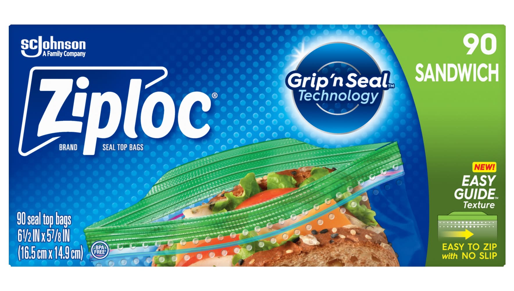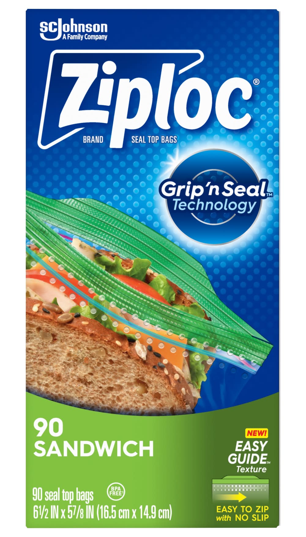 SANDWICH BAGS: One 90-count box of EasyGuide™ Ziploc® bags are designed to keep lunch fresh and secure on the go. EASYGUIDE TEXTURE: Ziploc®'s sandwich bags are easy to zip with no slip and offer a secure seal you can feel. EASYGUIDE SEAL: The EasyGuide seal helps keep food fresh on the go; open and close your sandwich bags with ease and zip confidently. REUSABLE SNACK BAGS: These Ziploc bags are made with BPA-free plastic and are reusable when used as directed. UNLOC VERSATILITY: Use your Ziploc sandwich bags for lunchboxes, school snacks and after-school activities. • Color: Clear • Packaging: Reusable