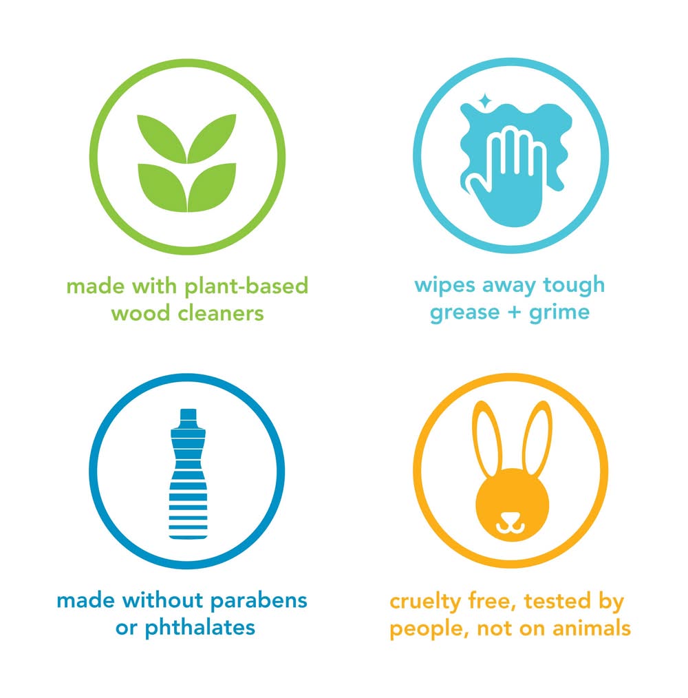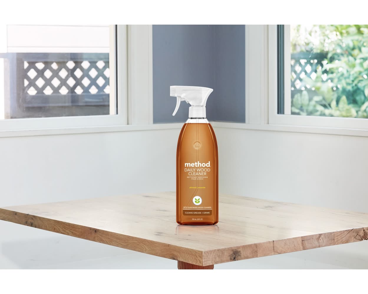 Made with plant-based wood cleaners + other thoughtful ingredient. Removes dust + grime without harming your well-loved wood surfaces. Use daily to clean and dust wood tables, counters, walls, shelves and panels. Cruelty free and tested by people, not on animals. Bottle (minus nozzle) made of 100% recycled plastic (PCR). Almond is a delightfully rich + nutty fragrance that makes cleaning up a piece of (almond) cake. Packaging: Reusable