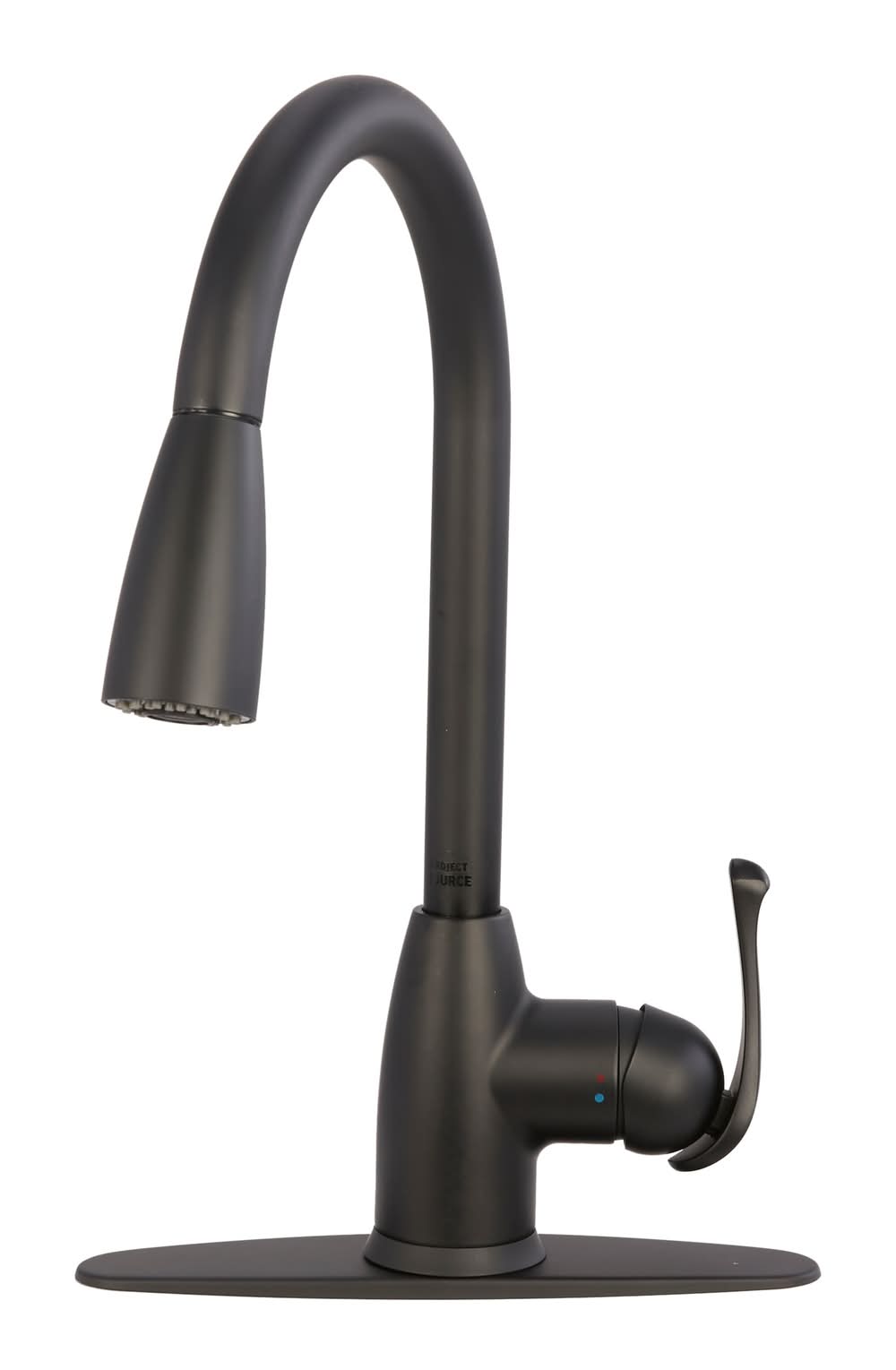 Project Source Tucker Matte black Single Handle Deck-mount Pull-down Kitchen Faucet with Sprayer (Includes Deck Plate)