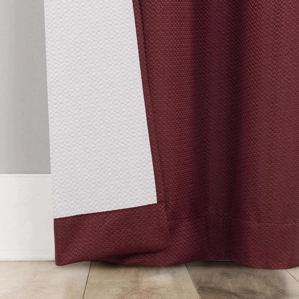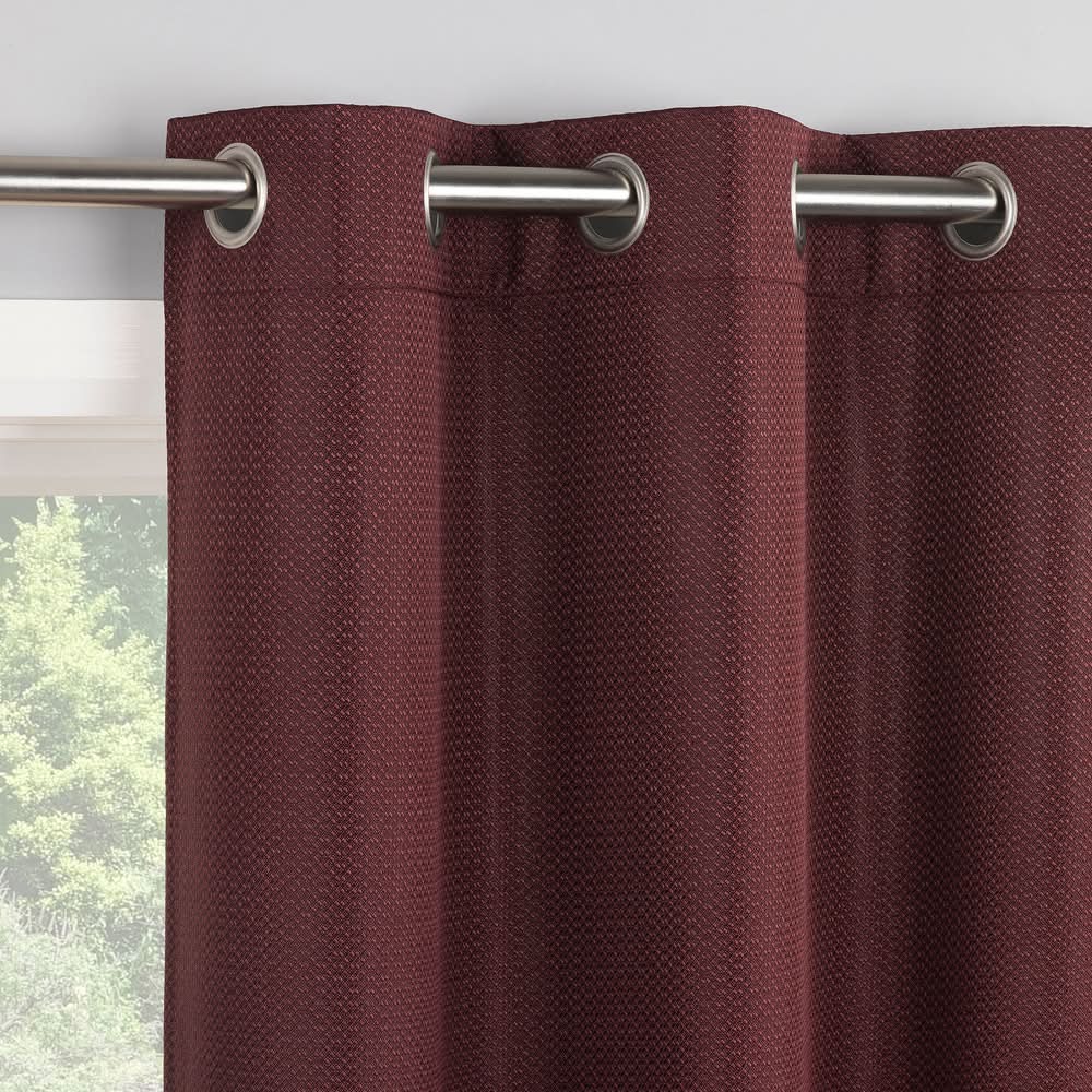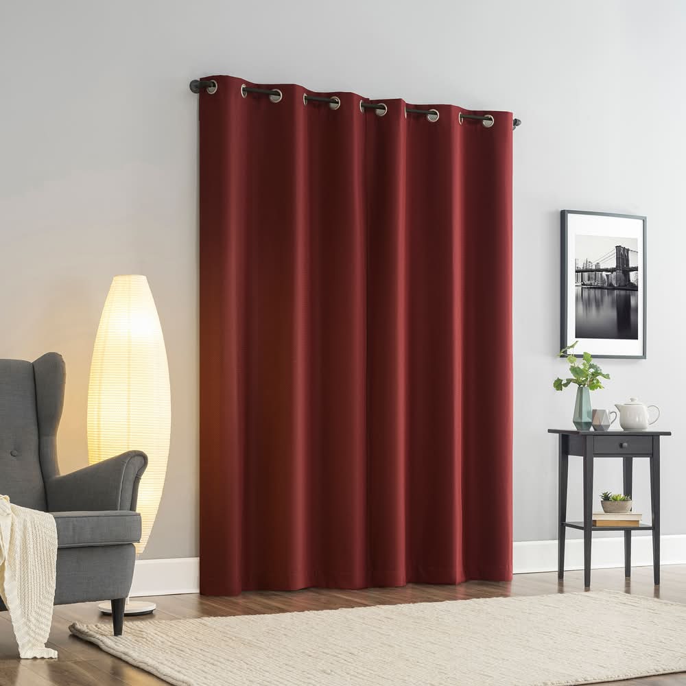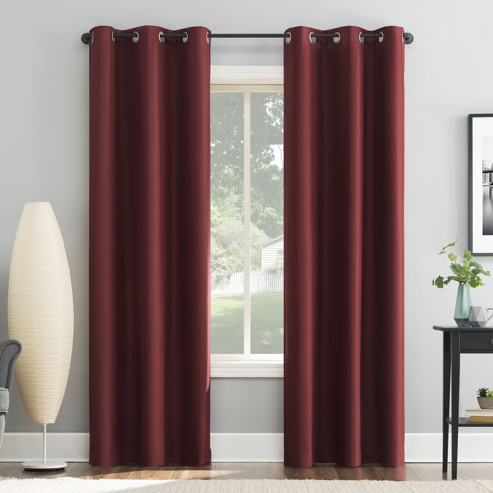 Sun Zero Blackout technology blocks out most unwanted light while enhancing privacy.. Energy efficient design reduces energy lost through your windows by up to 40%. Thermal properties help keep summer heat and winter chill out of your home. Noise reduction up to 30% helps you get a sounder, more uninterrupted sleep. Built-in metal grommets fit curtain rods up to 1.5" in diameter. Panels sold individually, measure carefully prior to purchase (Image features 2 panels).. Use Location: Indoor Color: Red