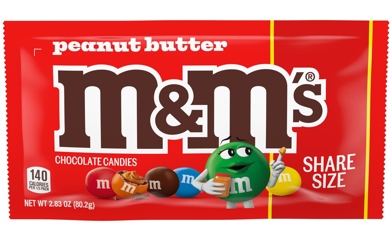 Peanut Butter Flavored. Share Size. Crunchy candy shell, sweet peanut butter filling.