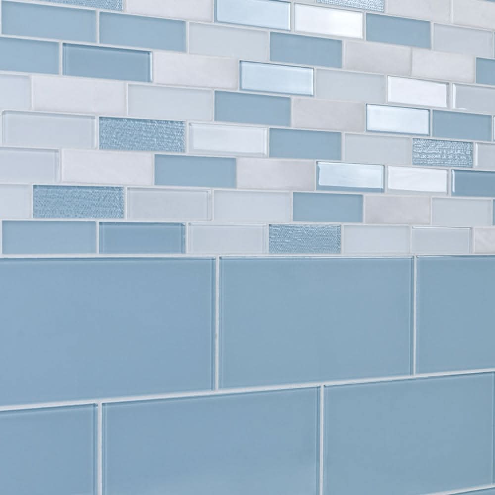 Beautiful blends of the highest quality glass and stone are used, the perfect mix between durable yet stunning. From Elida Ceramica, known for high-quality glass mosaics, state of the art technology is used to create this tile's unique appearance. Light reflects beautifully off the shiny, smooth to the touch and lightly textured, glass chips paired with matte stone and glass chips that are softer to the touch. This mosaic features an impervious element, which allows for installation in high moisture areas, as well as installations in exterior settings. 11.75 in W x 11.81 in L x 4mm thick individual mosaic covers 0.964 sq ft. Ideal for interior walls such as bathroom walls, kitchen backsplashes, fireplace exteriors, pool linings, pool tanks, and shower walls. Variations in color appear throughout the mosaic including a beautiful assortment of soft blues, whites, and grey. For a uniform and well designed look use light color grout such as grey and white. This mosaic can be paired with ot Use Location: Indoor or outdoor For CA Residents Only: WARNING: This product can expose you to chemicals including Lead which are known to the State of California to cause cancer and birth defects or other reproductive harm. For more information go to www.P65Warnings.ca.gov.