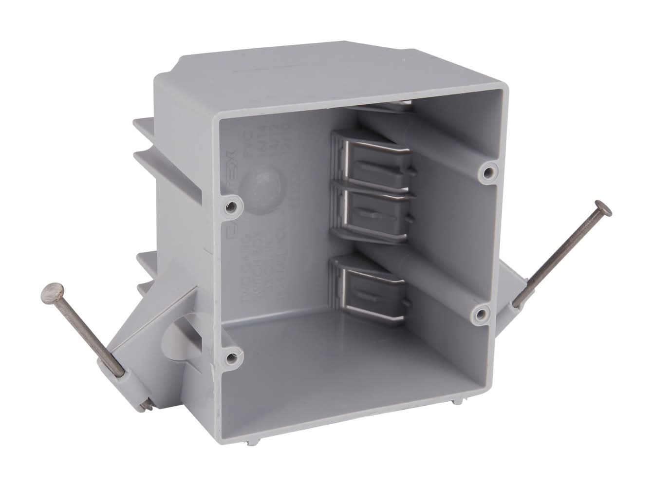 32 cubic inches. 2 Gang. Suitable for Masonry Walls. Made in the United States. Use Location: Ceiling/Wall Color: Gray