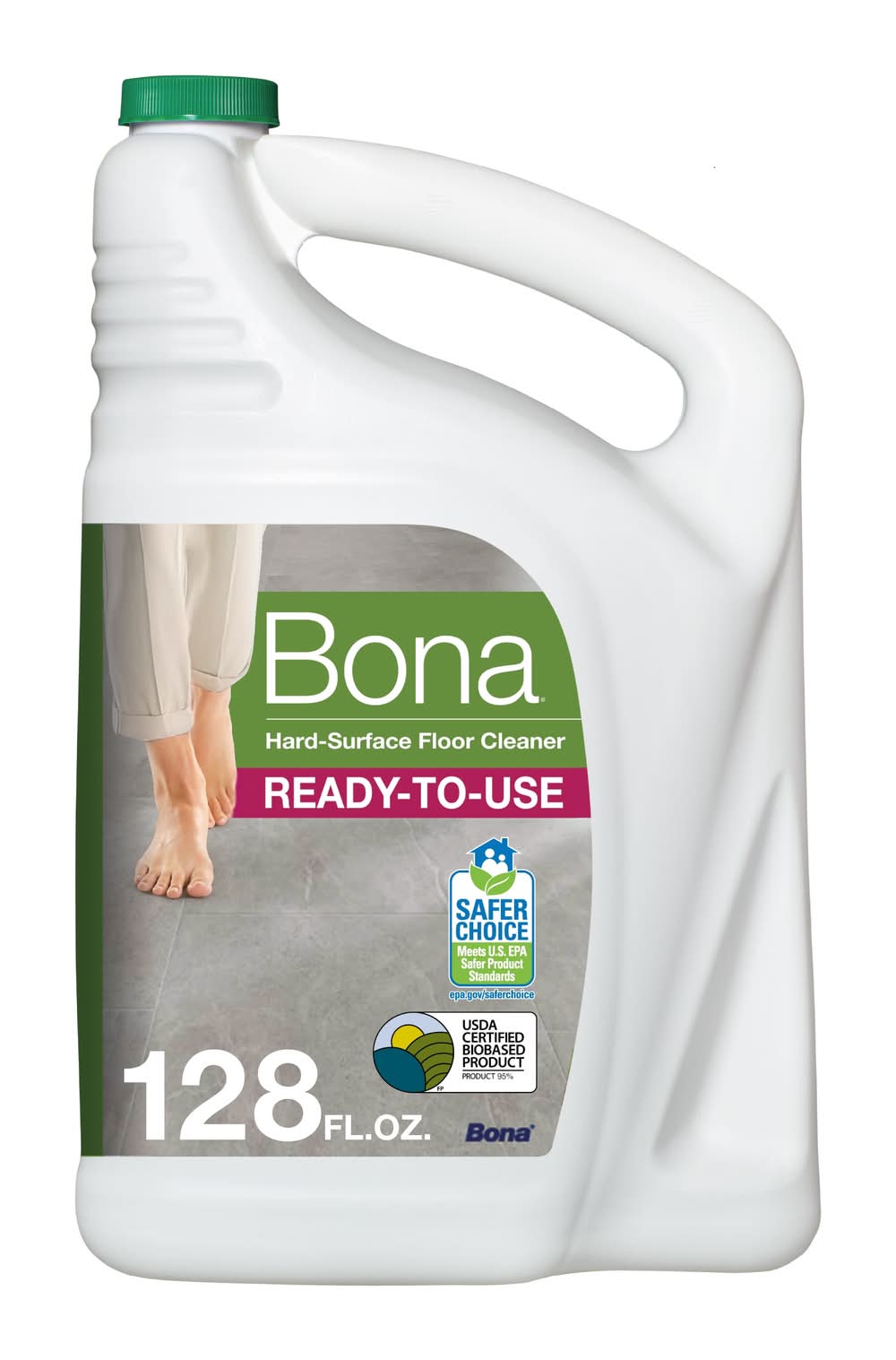 Easily refill any Bona floor cleaner spray bottle or mop cartridge. Residue-free, fast drying solution that removes dust, dirt and grime leaving your floors clean and beautiful. Splashless technology and a wide handle provide extra control for a smooth pour. Protect your floor from discoloration and harm with our pH-neutral formulation; Safe for hard-surface floors like stone, no-wax sealed tile, laminate and luxury vinyl (LVT). Formulation contains 92% USDA certified biobased content; Meets the US EPA product standards and is Safer Choice Certified. Bottle is made of 30% post-consumer recycled content. SAVE ON PLASTIC WASTE: Bona refills prevent 800,000lbs of plastic from going into landfills each year. SUSTAINABLE DESIGN: Bottle made of 30% post-consumer recycled content. Packaging may vary. Use Location: Indoor