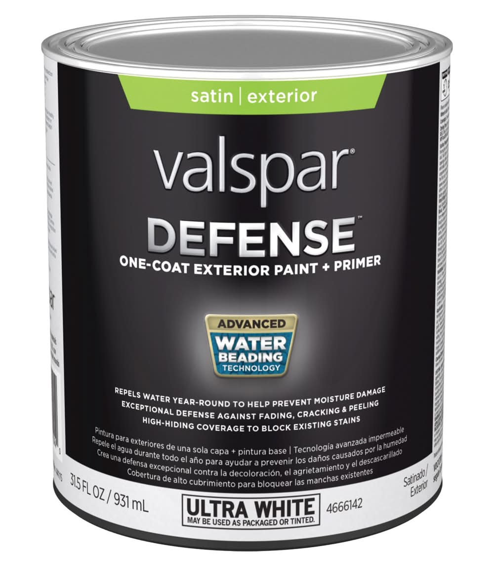 Valspar Defense Satin Ultra White Tintable Latex Exterior Paint + Primer ( 1-quart )