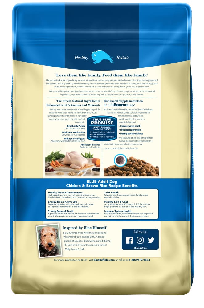 Blue Buffalo Adult Chicken and Brown Rice Dog Food 30-lb
