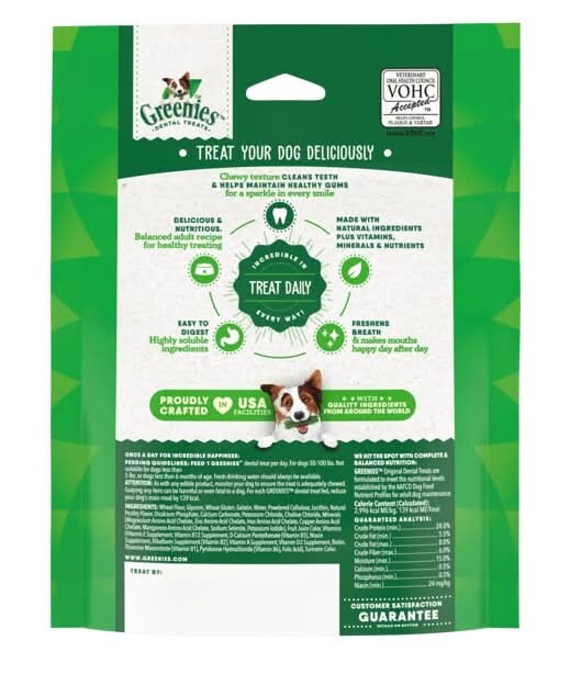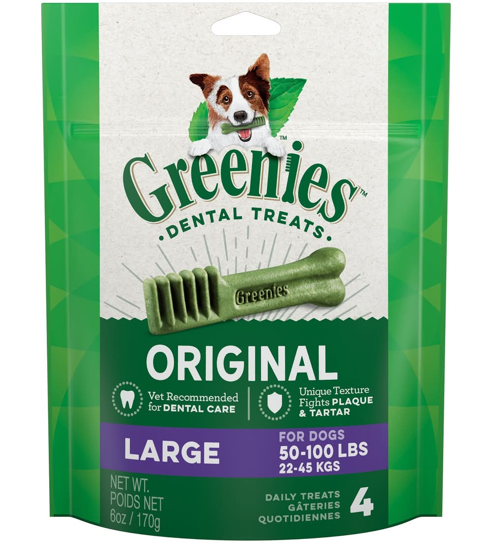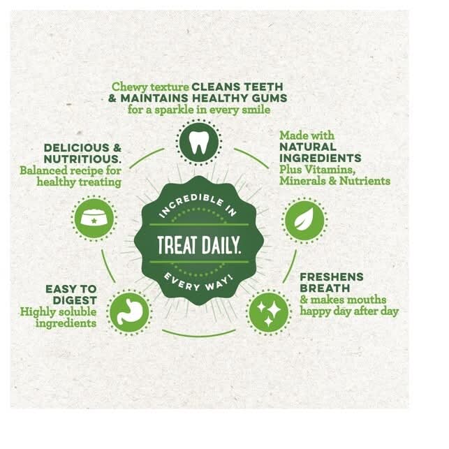 One Greenies treat a day is all it takes to clean teeth and freshen breath.. The texture fights plaque and tartar.. Natural dog treats are made of highly soluble ingredients that are easy to digest.. Use Location: Indoor/Outdoor