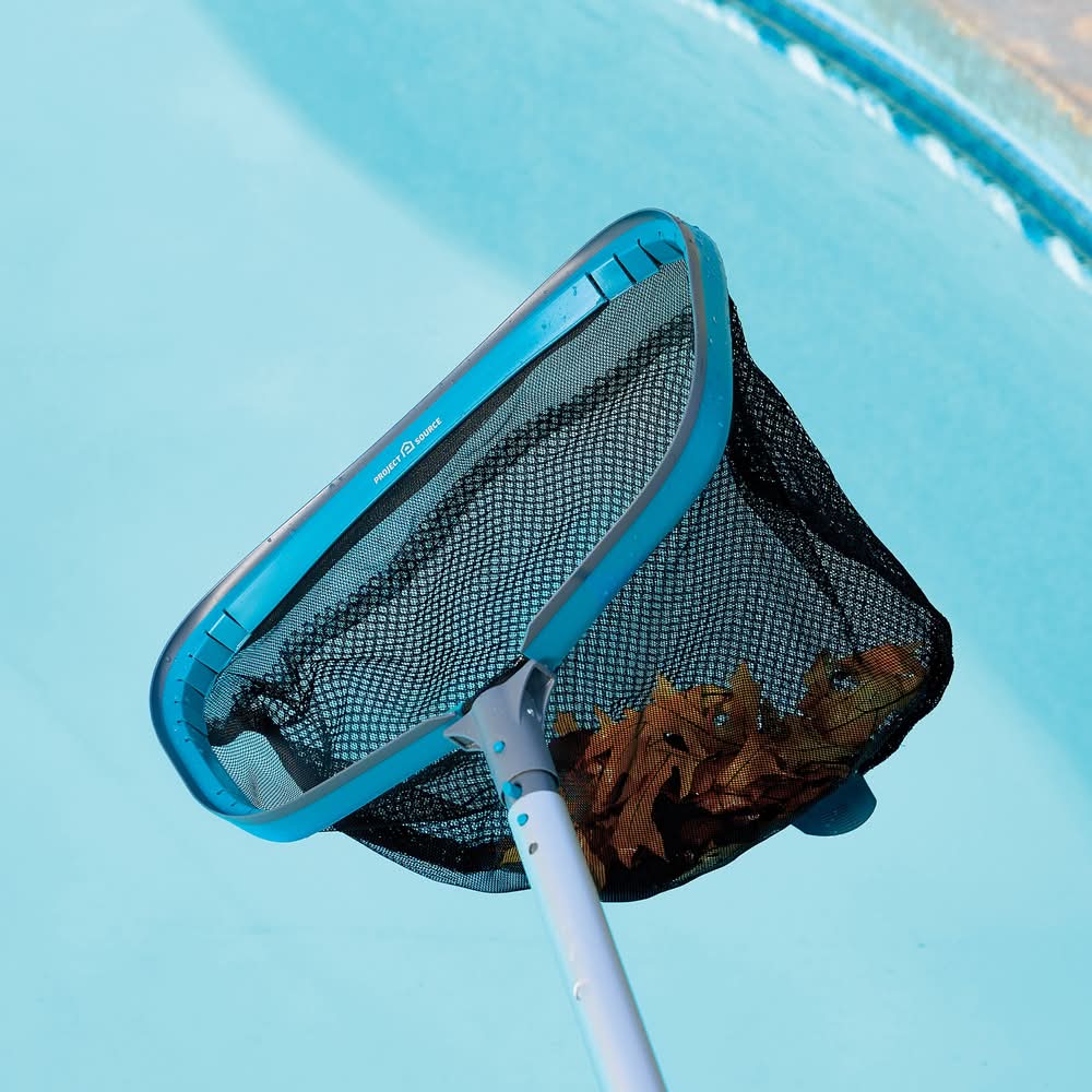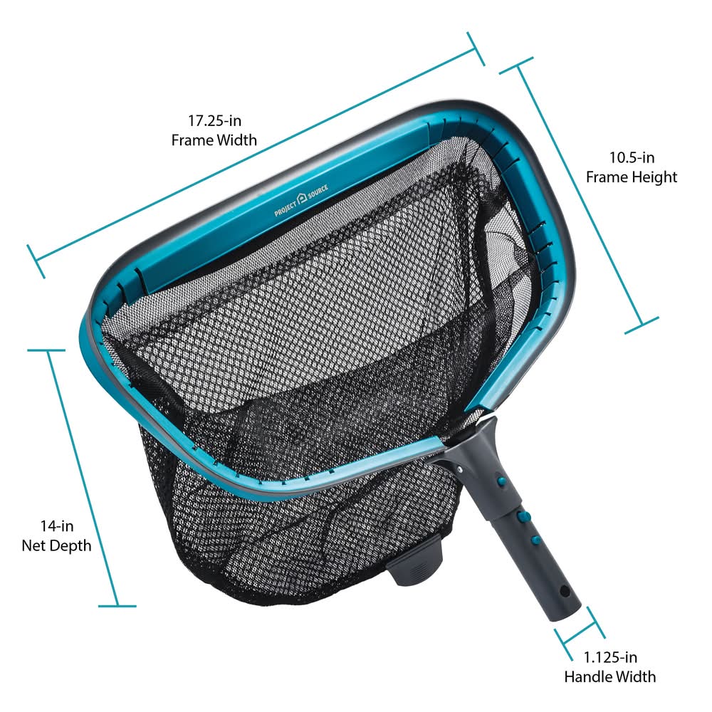 Lightweight aluminum frame with coextruded edge for easier use. Professional dual bag, deep inner nylon, and outer drag net for long life. For in-ground, above ground pools. The handle tab on bottom of deep net allows for quick removal of captured leaves and debris. Wide-mouth design. Replaceable aluminum handle with EZ clip system. Easy to move through water. Fits all industry standard pool poles with 1.16-in – 1.25-in ID.