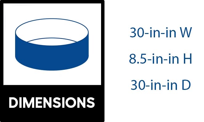 8.5-In H x 30-in D x 30-in W. Black, high temperature powder coated finish. 4-Piece construction. Surface-mount, easy to assemble. 1-Year limited warranty. For CA Residents Only: WARNING: This product can expose you to chemicals including Lead which are known to the State of California to cause cancer and birth defects or other reproductive harm. For more information go to www.P65Warnings.ca.gov. Color: Black