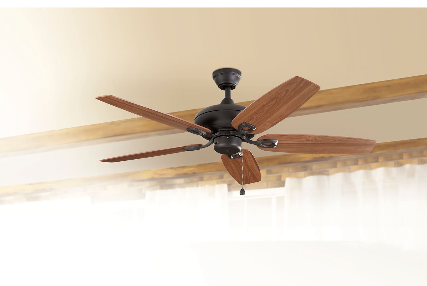 Tilt and Clean feature allows you to easily and quickly clean the glass and replace the light bulbs. Light kit with frosted glass bowl houses 2 A15/E26 LED bulbs that are included (can be installed with or without light kit). Can be hung flush with the ceiling where more walk-through space is, on standard ceilings with a 4-in downrod (included) or on angled ceilings. 52-in fan with airflow up to 3448 CFM is ideal for large rooms. Two easy to use pull chains are included for quick adjustments to the 3 speed settings and light output. Quiet, reversible motor efficiently circulates cool air in the summer and warm air in the winter, cutting down on energy costs. Great for traditional or transitional style decor. Limited lifetime warranty. Use Location: Indoor For CA Residents Only: WARNING: This product can expose you to chemicals including Lead which are known to the State of California to cause cancer and birth defects or other reproductive harm. For more information go to www.P65Warnings.ca.gov. Color: No