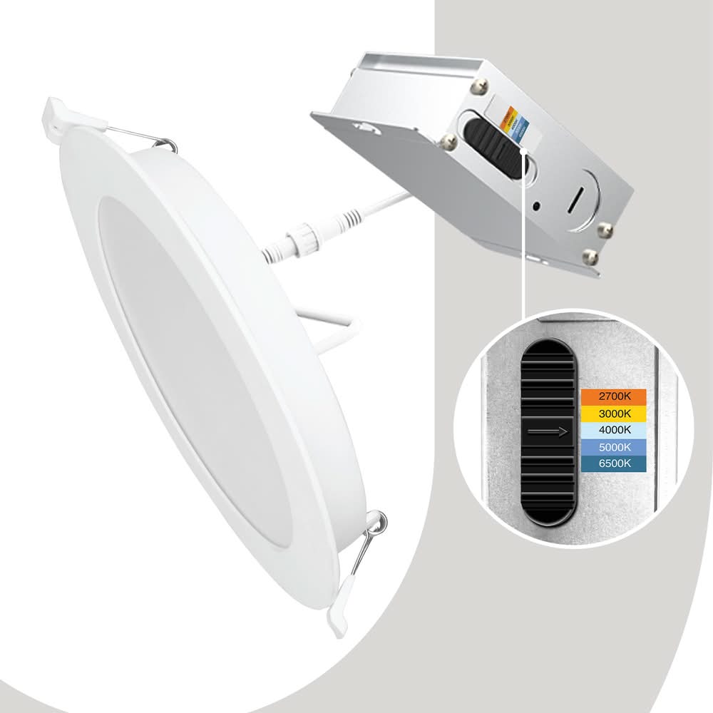 5CCT - 2700|3000|4000|5000|6500K. 650 Lumens. Retrofit Trim. Use Location: Interior/Exterior Color: White