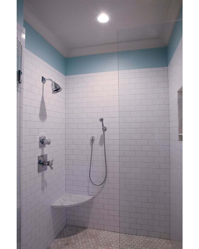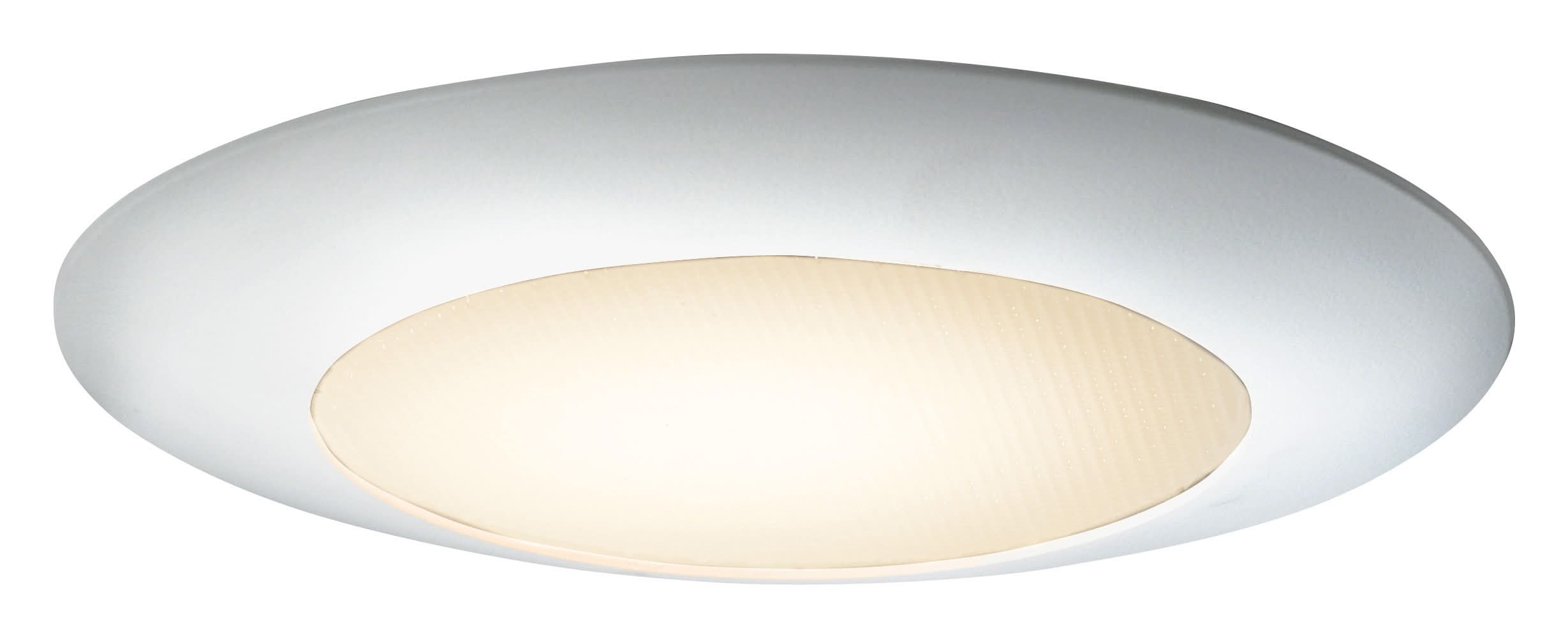 White shower light trim with frosted glass albalite lens. Non-conductive, non-corrosive polymer trim ring. Lens trim - wet location listed trim designed for use over tubs and in showers. Ambient lighting - general down lighting, but can also be used to wall wash or accent. Recommended lamp (bulb) - standard (A) lamp emits warm amber light and require reflectors to effectively control light. Use with Halo®; housings - H7T, H7RT (60W A19). Housing mounting - torsion spring retention. Color: White
