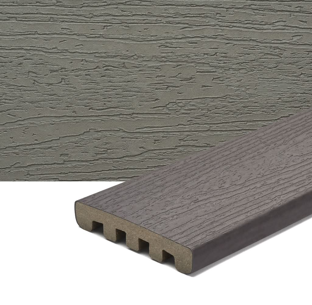 Trex’s eco-friendly composite deck board is made of 95% reclaimed wood and recycled plastic film, offering a low-maintenance alternative to wood that won’t rot, warp, or splinter. Backed by the Trex 25-year Limited Residential Warranty and the Trex 25-year Limited Residential Fade and Stain Warranty to provide peace of mind for years to come. 0.94-in Height x 5.5-in Width x 8-ft Length are the actual dimensions for this Trex composite deck board. Protective outer shell for durability that cleans easily with soap and water. Clam Shell is an easy-to-match shade of medium grey, featuring an attractive, wood-like grain pattern. Trex’s square-edge composite deck boards are perfect for stairs and creating deck borders. This board features a scalloped profile for lightweight, easy handling. Trex recommended deck screw - see installation guide for more details. Find the Clam Shell sample using Item Number: 1289410. For CA Residents Only: WARNING: This product can expose you to chemicals including Lead which are known to the State of California to cause cancer and birth defects or other reproductive harm. For more information go to www.P65Warnings.ca.gov. Color: Gray