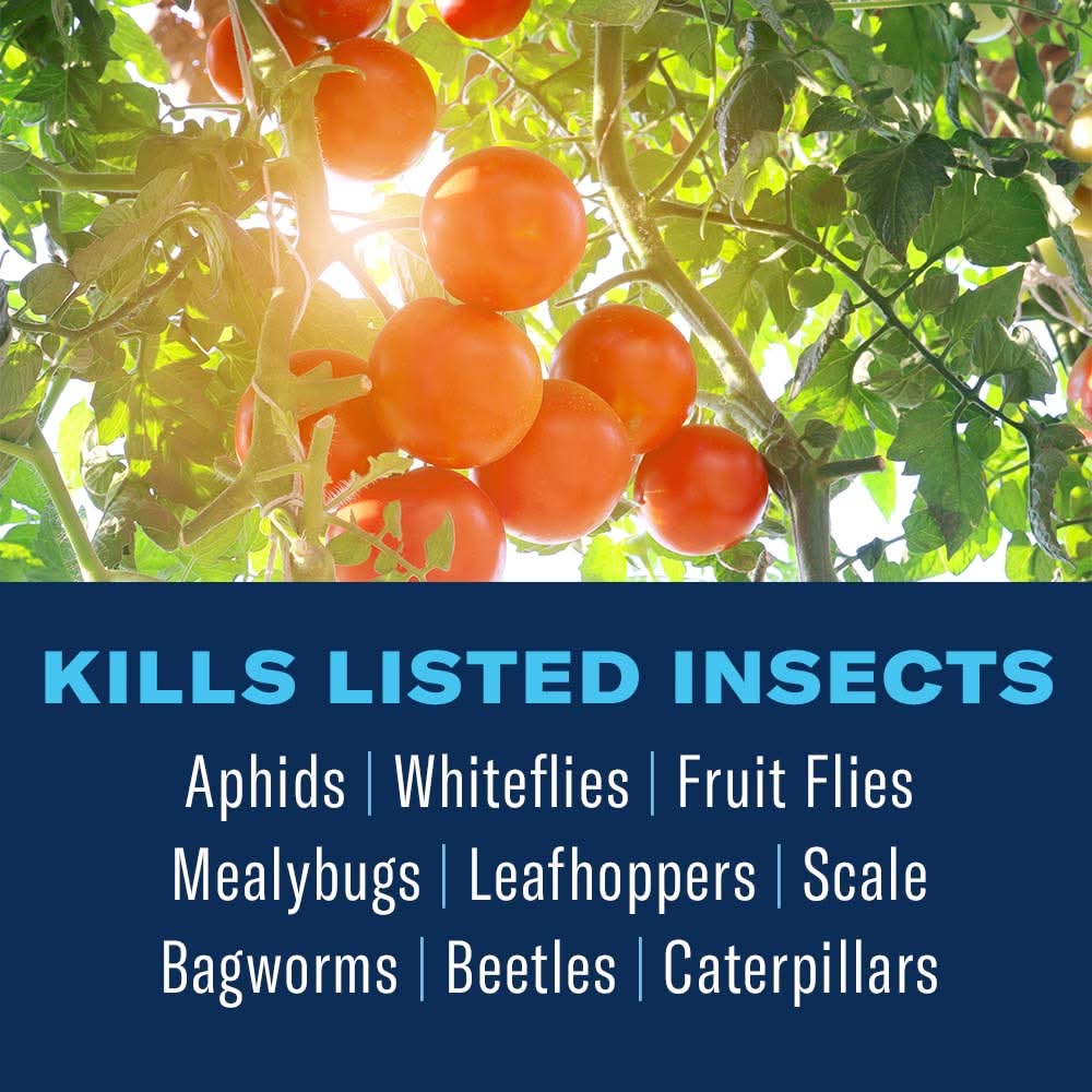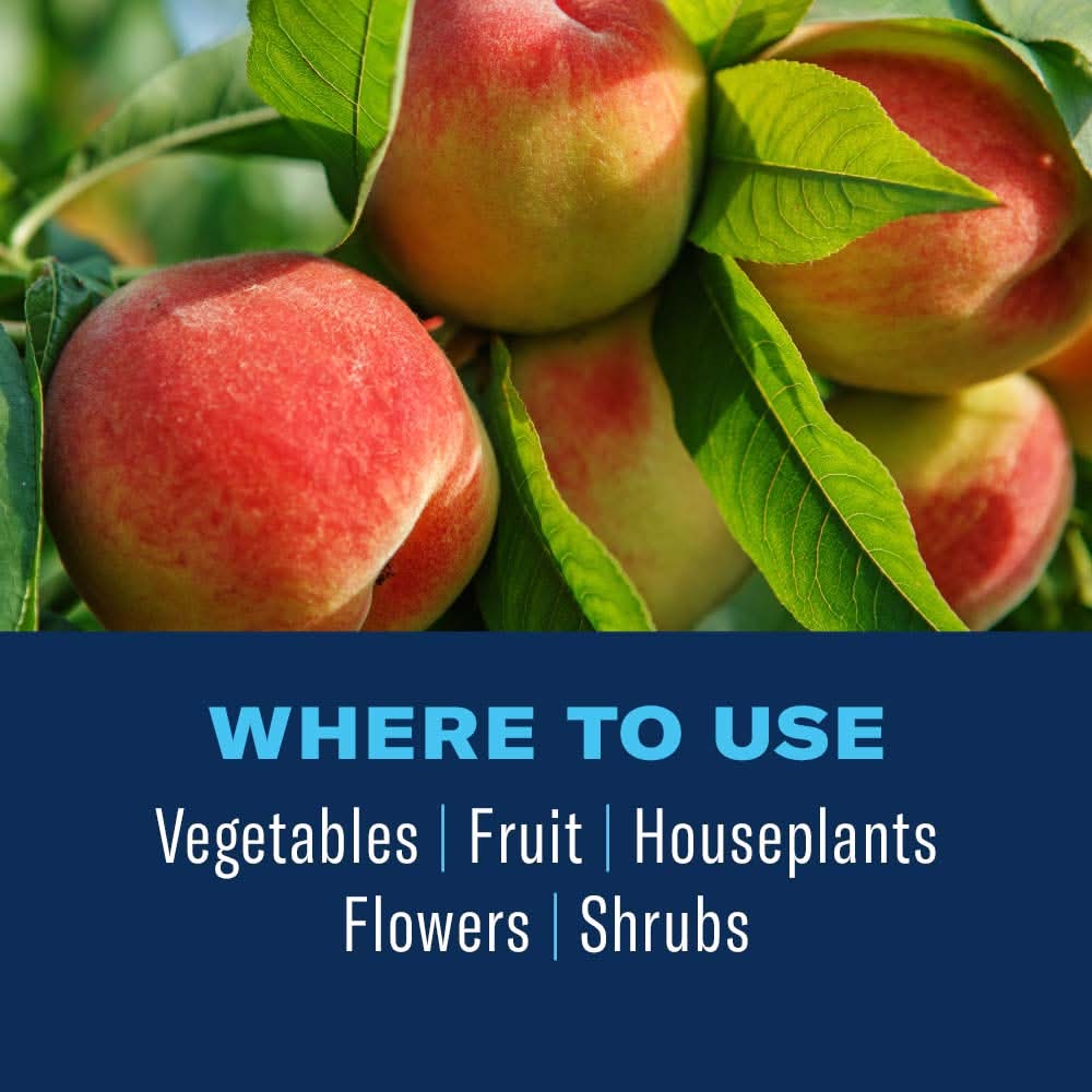 3 Benefits in one product: Insecticide, Fungicide and Miticide. Kills aphids, whiteflies, fruit flies, mites, mealybugs, scales and other listed pests. Kills eggs, larvae and adult stages of insects. Can be used up to day of harvest. Controls fungal diseases including powdery mildew and rust. Prevents fungal attack of plant tissues. Use on vegetables and fruits, houseplants, flowers and shrubs.