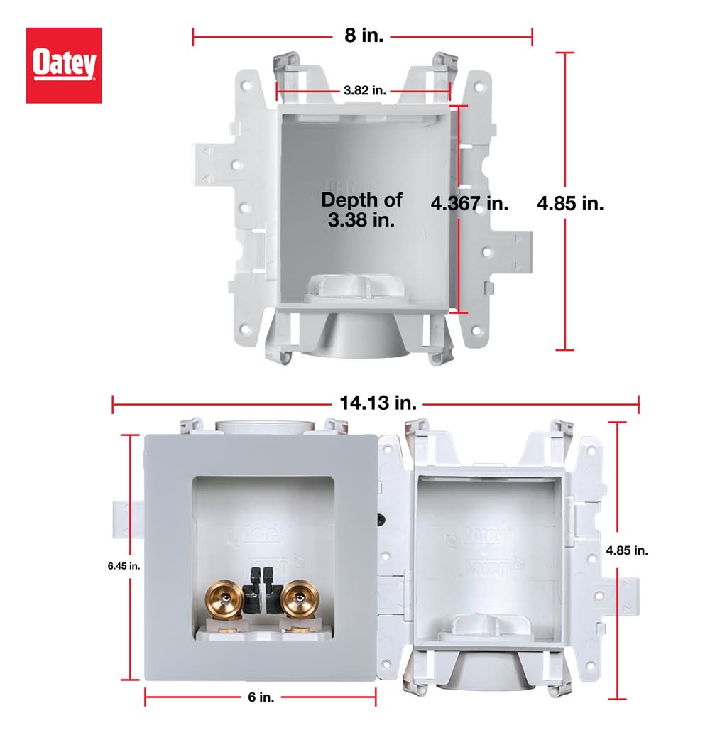 Oatey Moda Quarter turn ball valve Copper sweat Washing machine Outlet Box