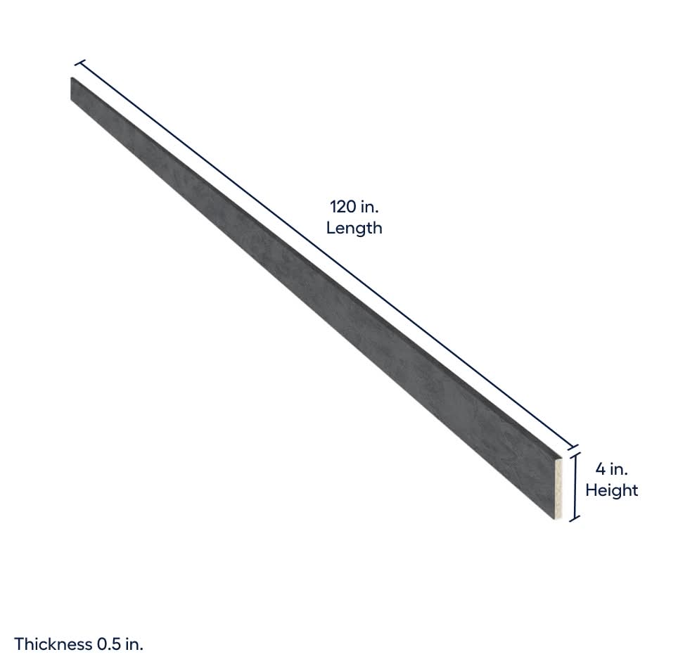 SLEEK DESIGN: With a trending sleek design and wrap-around profile, Stretta countertops are the ideal surface for a modern and clean appearance. GRAY CHARCOAL DESIGN: Urban Graphite's large-scale, ashy charcoal gray pattern provides a conteporary, natural look with its blend of both light and dark gray tones throughout the concrete inspired design. DIMENSIONS: Actual: 120 in length x 4 in depth x 0.5 in thickness, common: 10 ft length x 4 in depth x 0.5 in thickness. DURABLE PERFORMANCE: Stretta provides a durable stain, scratch, and scuff resistant countertop surface designed to be the center of your everyday activities. EASY-TO-INSTALL: A great solution for the DIYer; backsplash can be cut to match the length of your countertops. COMPLEMENTARY ACCESSORIES: VT Stretta accessories are sold separately and matching endcap kits, designed to finish the ends of your countertop and backsplash. For CA Residents Only: WARNING: This product can expose you to chemicals including Lead which are known to the State of California to cause cancer and birth defects or other reproductive harm. For more information go to www.P65Warnings.ca.gov.