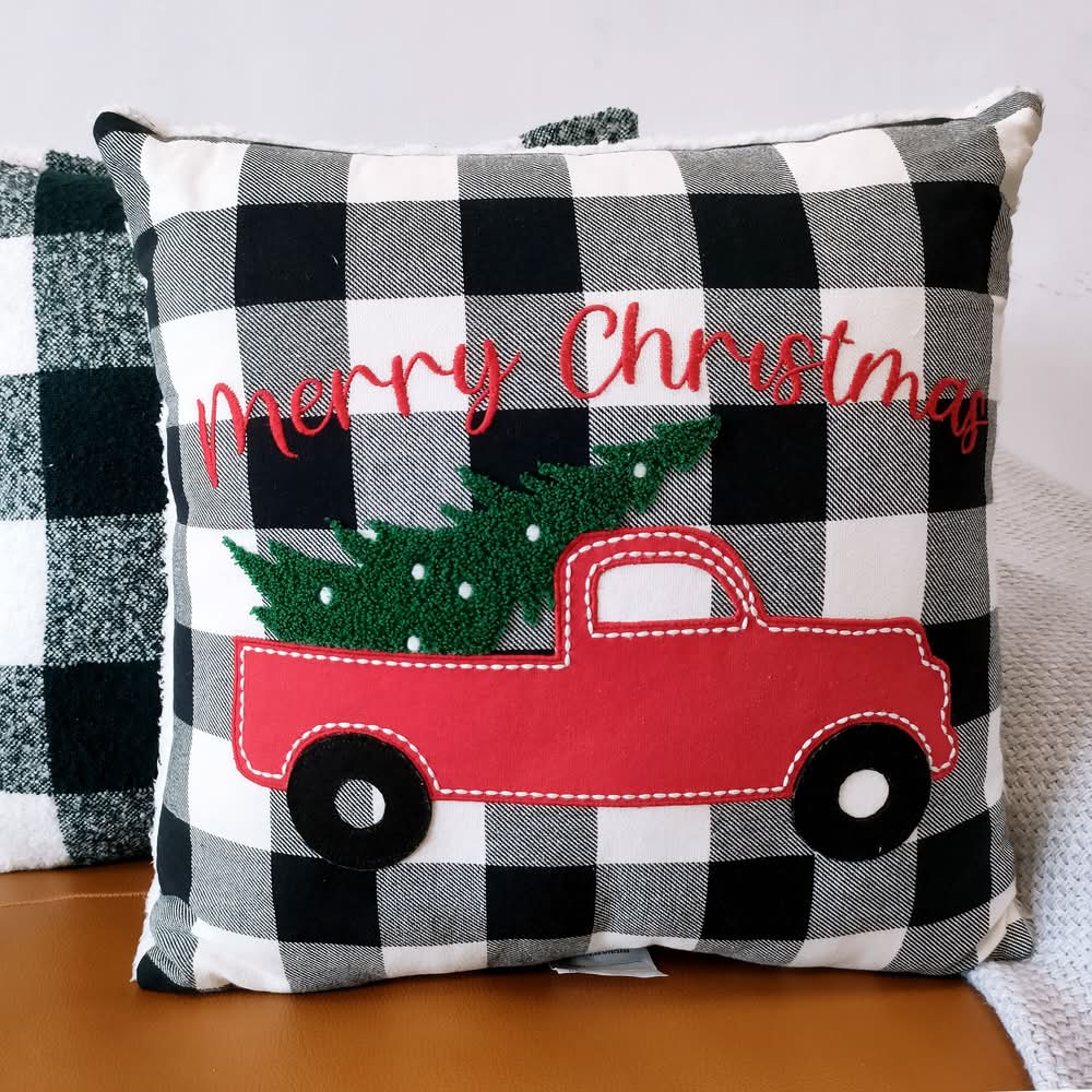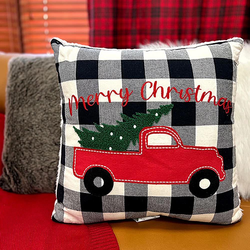 Holiday Living 18-in x 18-in Plaid/Red Truck Square Indoor Decorative Pillow