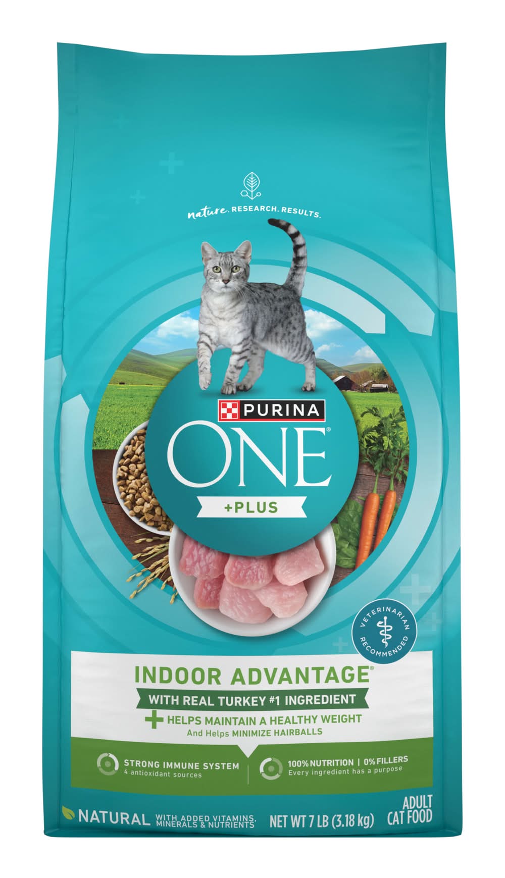 100% Nutrition for everything your adult cat needs. Turkey is the #1 ingredient, formulated to minimize hairballs and promote healthy weight of indoor cats. High protein cat food kibble with 10 percent less fat than Purina ONE Tender Selects Blend With Real Chicken helps her maintain a healthy weight.