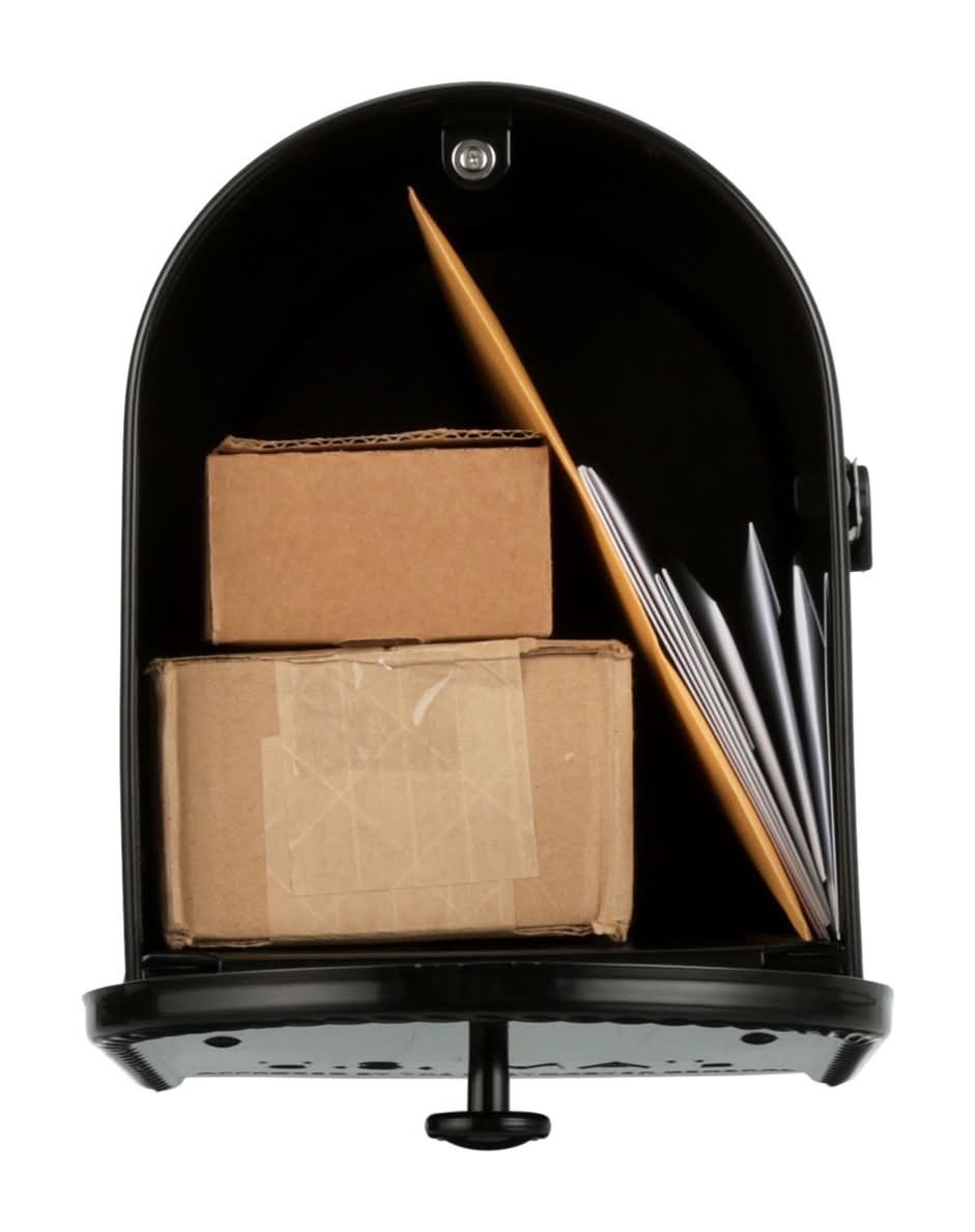 Constructed from rust-resistant galvanized steel for durability. Large capacity accommodates high volume mail deliveries including padded envelopes, magazines, and small- to medium-sized packages. Magnetic latch ensures door stays firmly closed in between pickups. Features decorative accents including a braided rope design, round pull knob, and satin nickel outgoing mail flag. Glossy black finish is powder-coated to resist rust and elements. Fully assembled with pre-drilled holes on side and bottom to reduce installation time. Match with Gibraltar Mailboxes posts with the designation letter B. Mounting hardware sold separately. For CA Residents Only: WARNING: This product can expose you to chemicals including Lead which are known to the State of California to cause cancer and birth defects or other reproductive harm. For more information go to www.P65Warnings.ca.gov. Color: Black