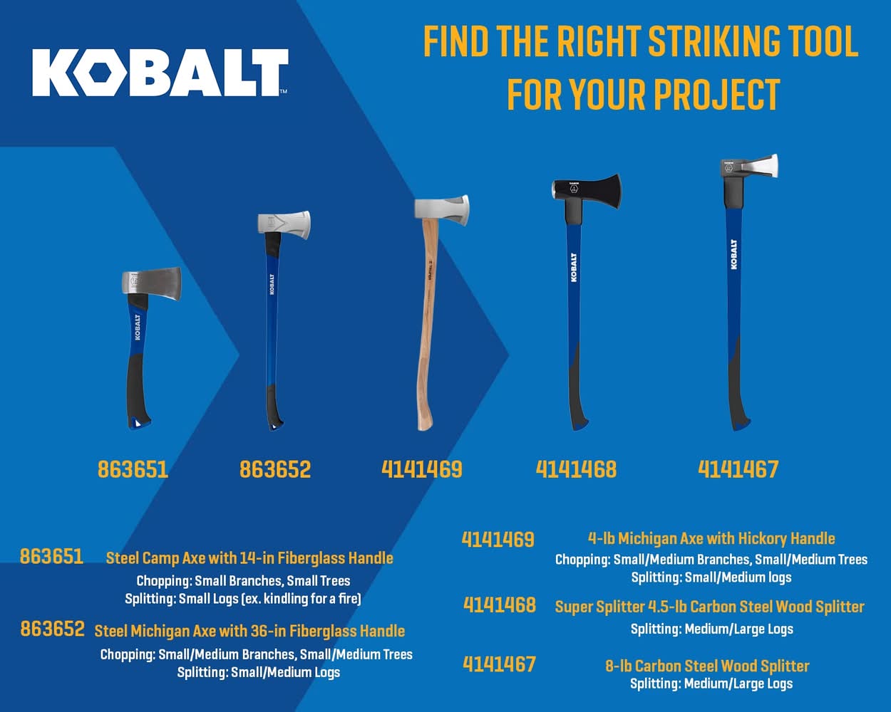 Kobalt 1.25-lb Steel Camp axe with 14-in Fiberglass Handle