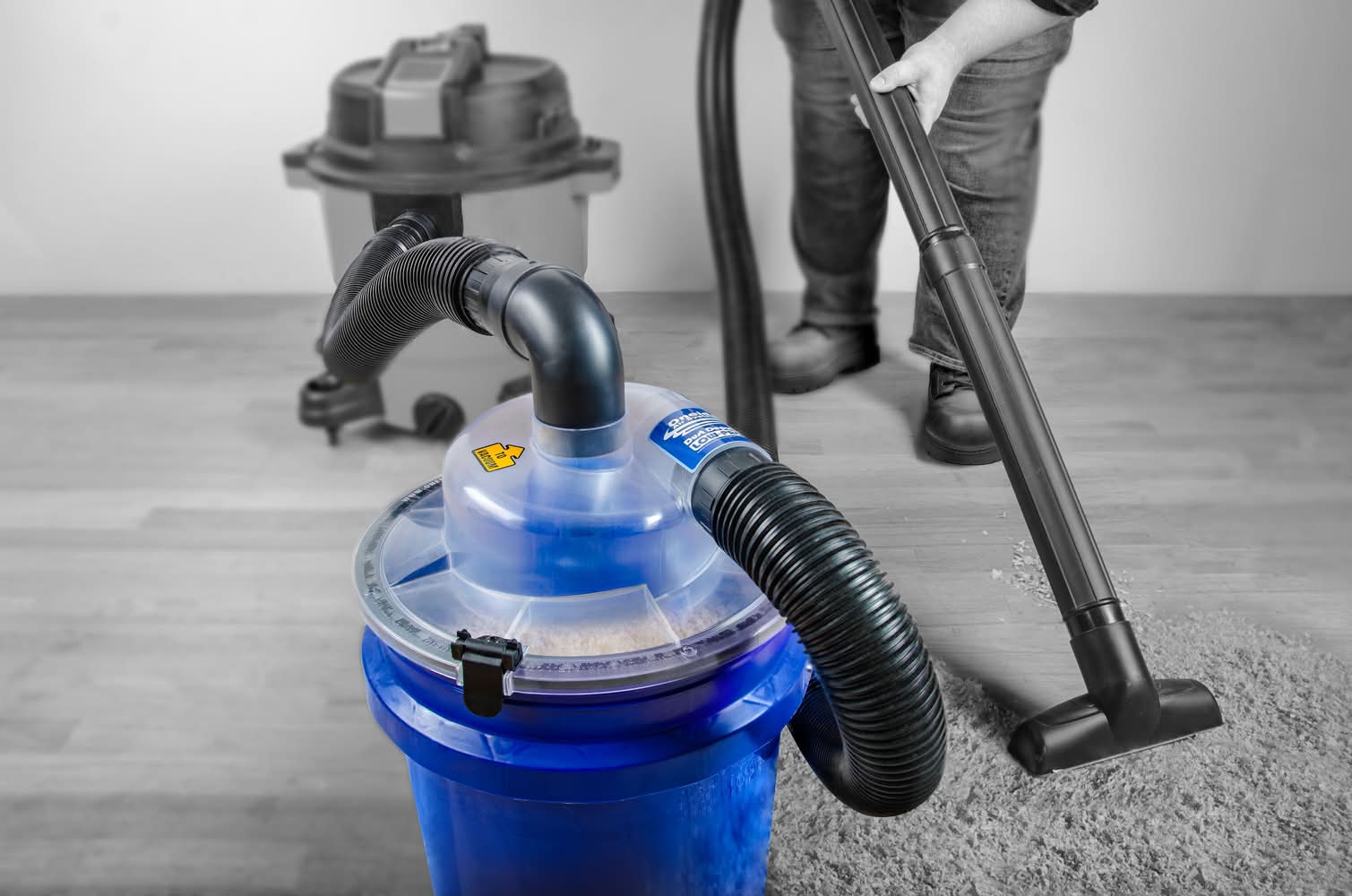 New, Dust Deputy low-profile cyclone design stops up to 99.9% of fine dusts and bulk debris from clogging your wet/dry vacuum’s filter.. Maintains optimal vac suction and air flow while virtually eliminating the need to clean or replace the vacuum filter.. Innovative, adjustable Clips ensure secure connection to virtually all 5-gallon buckets -- see the Clip Instruction Video on this page for more details.. Compact profile easily fits in tight spaces.. Can be used to collect a variety of materials, including sawdust, drywall dust, concrete dust, cooled ash, pet hair, water, and much more.. Upgrades any wet/dry vacuum with 2.5-inch hose fittings.. Fits most standard 12-inch diameter 5-gallon buckets, and clear design makes it easy to check the bucket fill level.. Comes with Dust Deputy Low-Pro lid separator, 3 ft hose, elbow, and gasket.. Proudly made in the USA.. For CA Residents Only: WARNING: This product can expose you to chemicals including Lead which are known to the State of California to cause cancer and birth defects or other reproductive harm. For more information go to www.P65Warnings.ca.gov.
