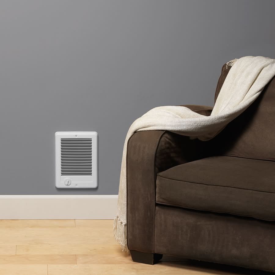 2,000 watt heater at 240 volts or 1500 watts at 208 volts is ideal for medium sized rooms. Warm an area up to 300 square feet in a hurry with a fast-heating coil element. Spread the warmth all around with an efficient, quiet fan. Rest safe and easy— safety features turn heater off if normal operating temperatures are exceeded. Enjoy trouble-free use thanks to durable, reliable design. Powder coating is designed to eliminate sharp edges while providing a durable finish. Unique compact design, recess mounted that can be horizontal or vertical mounting options suit any room. Complete unit includes a wall can, heater, grill, and thermostat for hard-wired installation into your wall. Proudly made in the USA. Use Location: Indoor For CA Residents Only: WARNING: This product can expose you to chemicals including Lead which are known to the State of California to cause cancer and birth defects or other reproductive harm. For more information go to www.P65Warnings.ca.gov. Color: White