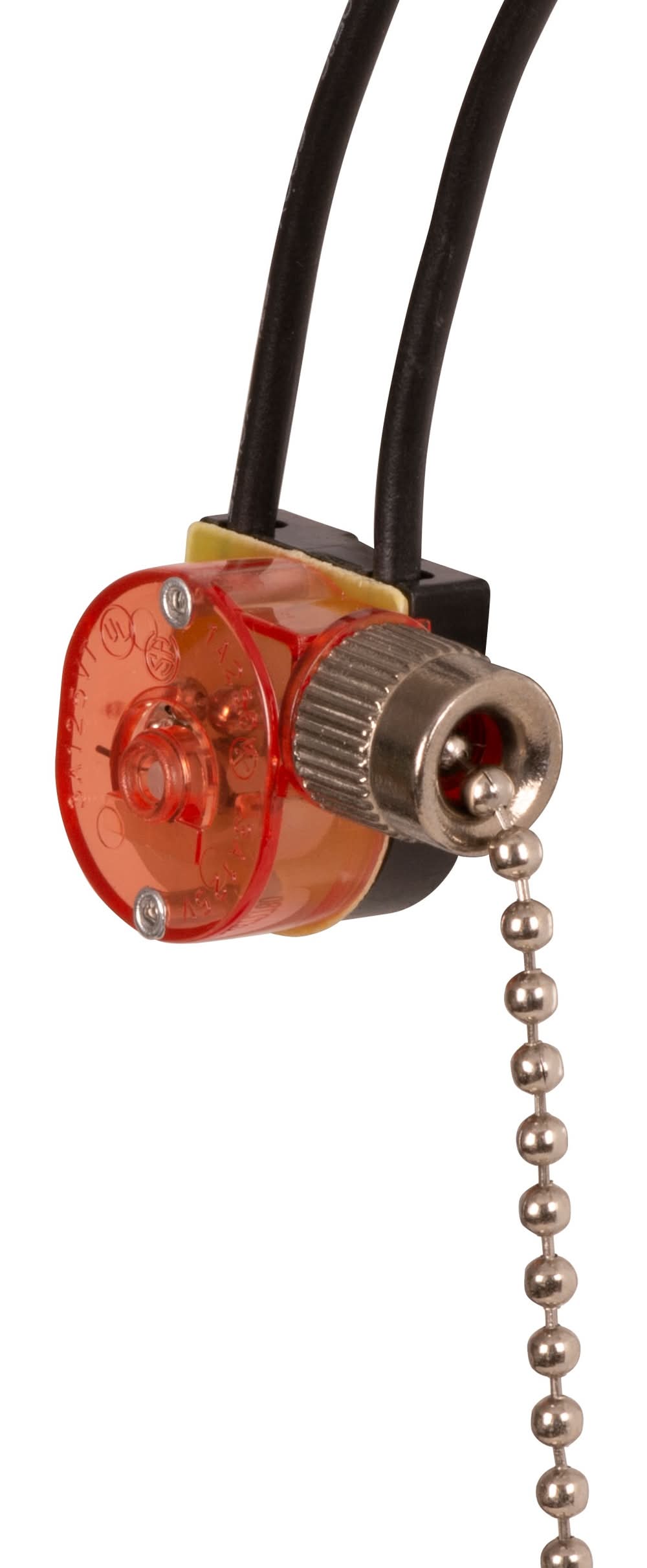Replacement switch controls the on/off ceiling fan light control. Easy to install in an existing ceiling fan to repair a broken switch. Includes 2-in chrome pull chain from switch. 6-in lead wire from switch. 1A/250v, 3A, 125v, 18AWG wire, 105deg Celsius. Use Location: Indoor For CA Residents Only: WARNING: This product can expose you to chemicals including Lead which are known to the State of California to cause cancer and birth defects or other reproductive harm. For more information go to www.P65Warnings.ca.gov. Color: Chrome