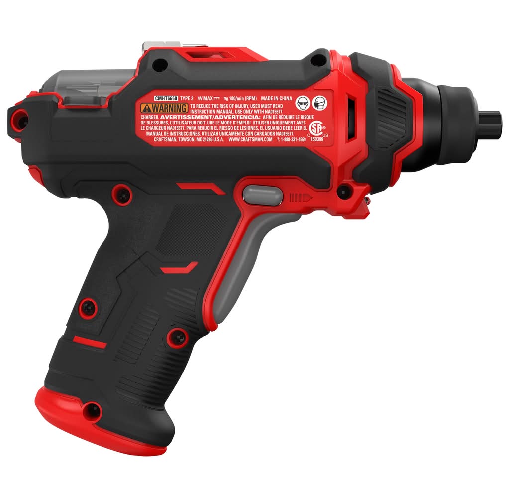 Convenient bit storage: Rotating bit cartridge stows bits and provides hands-on accessibility. Brighten low-light areas with integrated LED work light for visibility. Free up your hands while you work with an onboard magnet that holds extra screws. Tackle a variety of projects with 8 included bits. Includes: (1) CMHT6650C 4V MAX* Screwdriver, (1) Charger, (8) Bits. For CA Residents Only: WARNING: This product can expose you to chemicals including Lead which are known to the State of California to cause cancer and birth defects or other reproductive harm. For more information go to www.P65Warnings.ca.gov. Color: Red