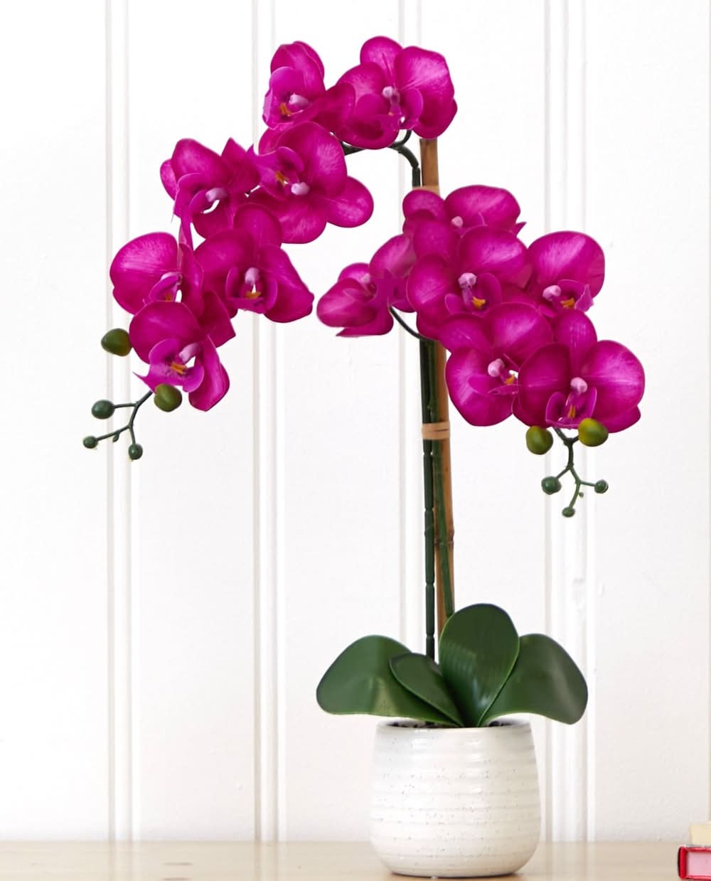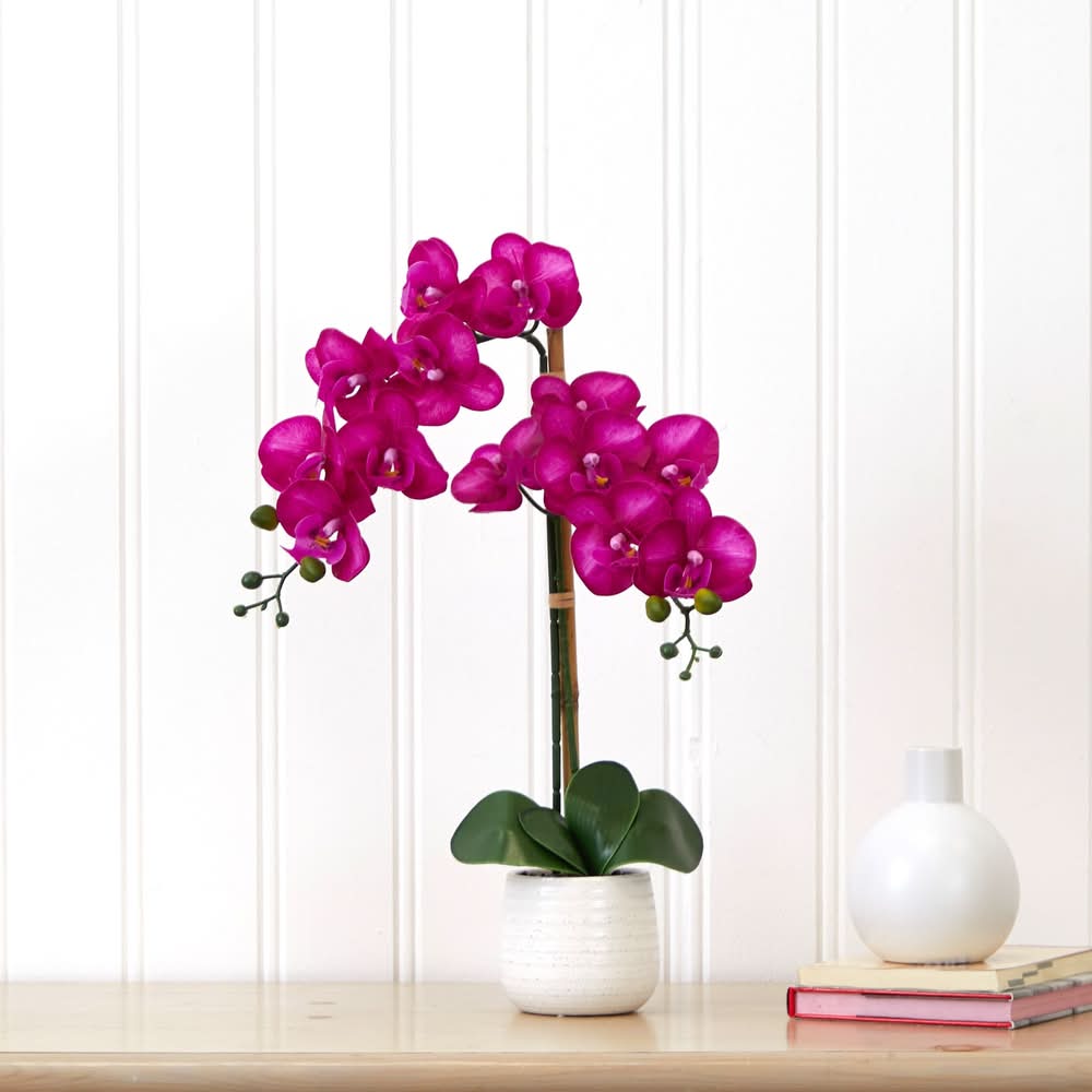 allen + roth 19-in Pink, Green, White Indoor Desktop Orchid Artificial flower