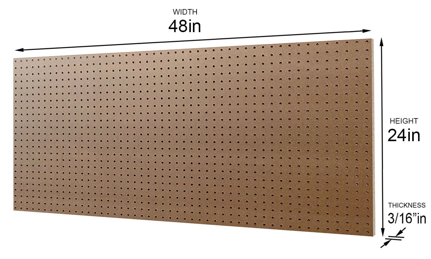 Perfect for organizing your garage or work area. Ready to finish - smooth on both sides. Holes are 9/32-in, 1-in on center, starting 1/2-in from the edges. Formaldehyde free. Lifetime limited warranty. Weight: 6 lbs. Class lll Flame Spread Rating. For CA Residents Only: WARNING: This product can expose you to chemicals including Lead which are known to the State of California to cause cancer and birth defects or other reproductive harm. For more information go to www.P65Warnings.ca.gov. Color: Brown