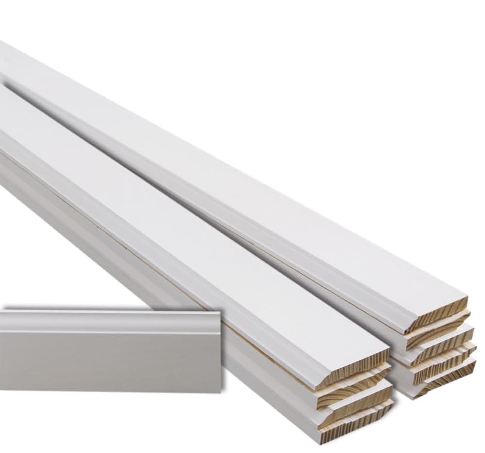 RELIABILT 9/16-in x 3-1/4-in x 12-ft baseboard installs using brad nails or finishing nails for trim for baseboard or trimming baseboards. High quality finger joint pine primed baseboard. White color allows for the baseboard to be painted to coordinate with trim, moulding, and more!. Made for interior baseboard moulding projects. Colonial style creates an elegant and traditional design to any room. Colonial style mouldings give a room a detailed distinct look. Use Location: Interior For CA Residents Only: WARNING: This product can expose you to chemicals including Lead which are known to the State of California to cause cancer and birth defects or other reproductive harm. For more information go to www.P65Warnings.ca.gov. Color: White