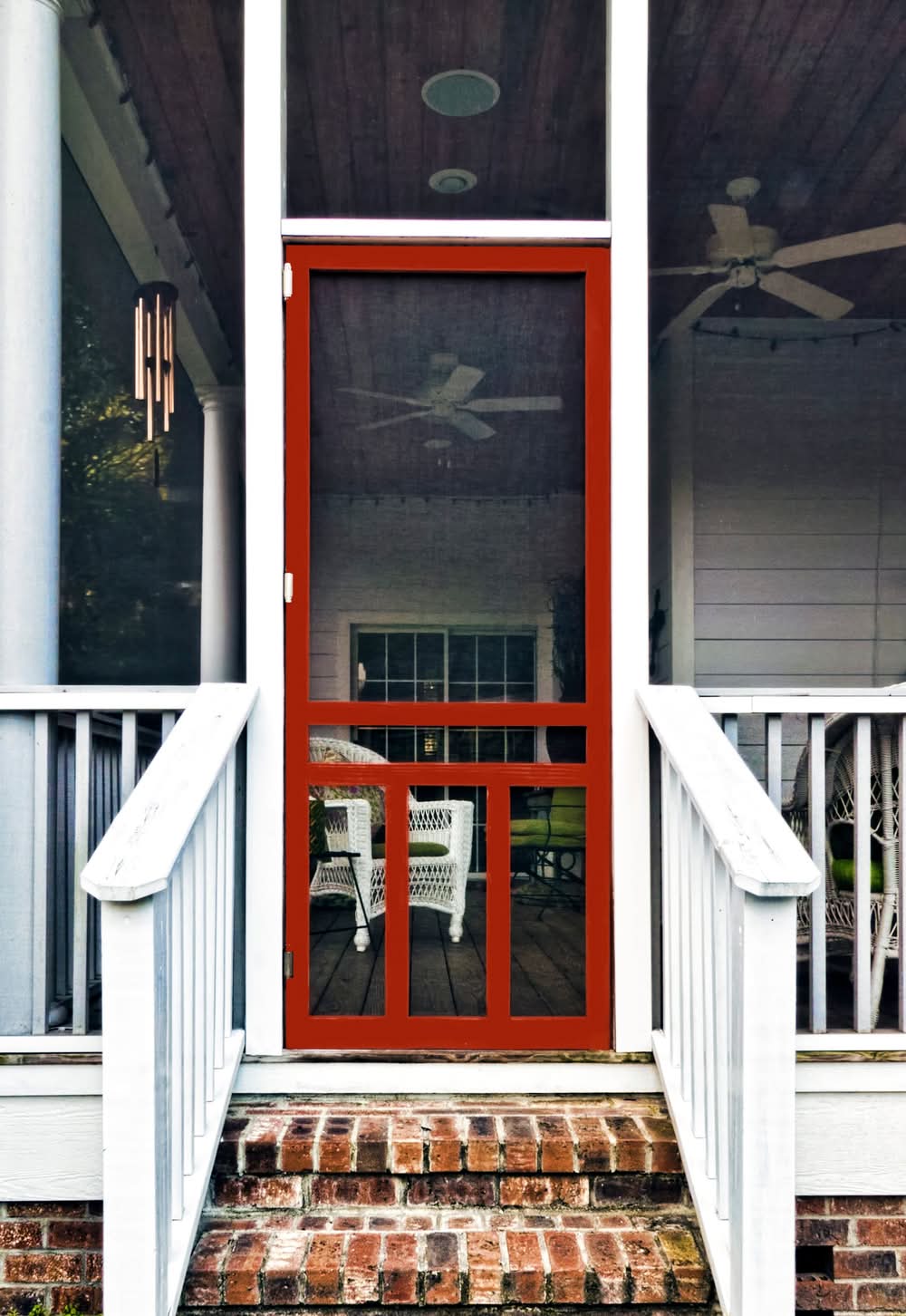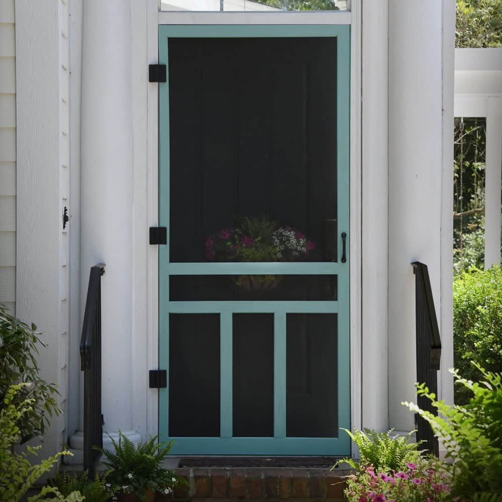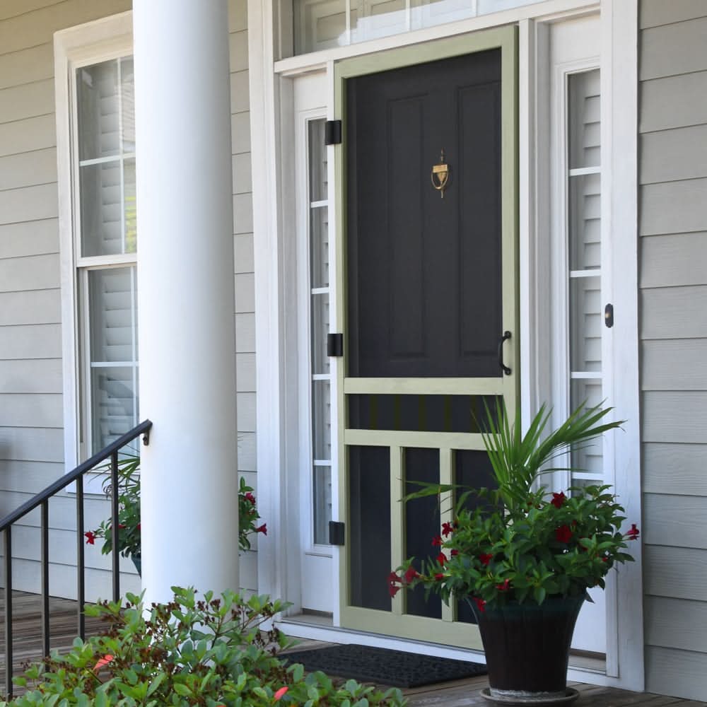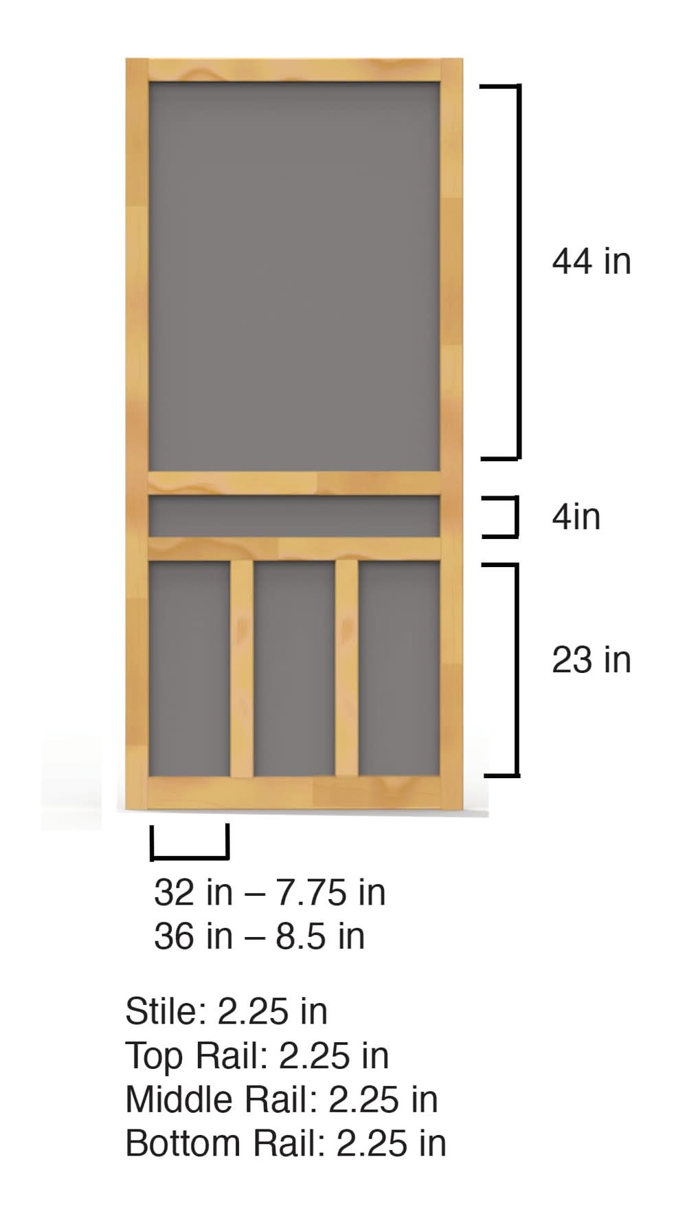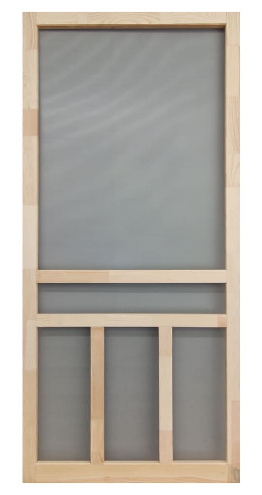 Customize with color and accessories to match your home. Door design allows for easy rescreening with .150 spline. Durable mortise and tenon construction - no sagging. Optimal design for natural light and breeze. Trim up to 3/8 in. off each side, if needed. Design offers quality pet protection. Solid finger joint wood provides straightness and dimensional stability - decreasing warping and/or twisting of traditional wood. Hardware sold separately. Sealant recommended.