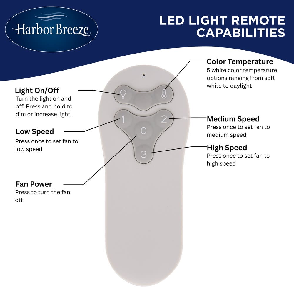 Features an 18W LED integrated light kit with five color temperatures (2700k, 3000k, 4000k, 5000k, 6500k).. Suitable for indoor and covered outdoor locations.. At 44-in diameter, this fan is ideal for small rooms up to 100 sq ft.. 3-speed remote control included for convenient usage.. Tri-mount installation for downrod use with flat or angled ceilings (6-in downrod included) or use without downrod for lower ceilings.. Reversible motor allows for changing the fan direction seasonally to push cool air down in the summer, or distribute warm air evenly in the winter.. The matte black fan finish complements your style in any room.. This fan provides a CFM of 3874 on high speed.. Use Location: Indoor/Outdoor For CA Residents Only: WARNING: This product can expose you to chemicals including Lead which are known to the State of California to cause cancer and birth defects or other reproductive harm. For more information go to www.P65Warnings.ca.gov. Color: Yes