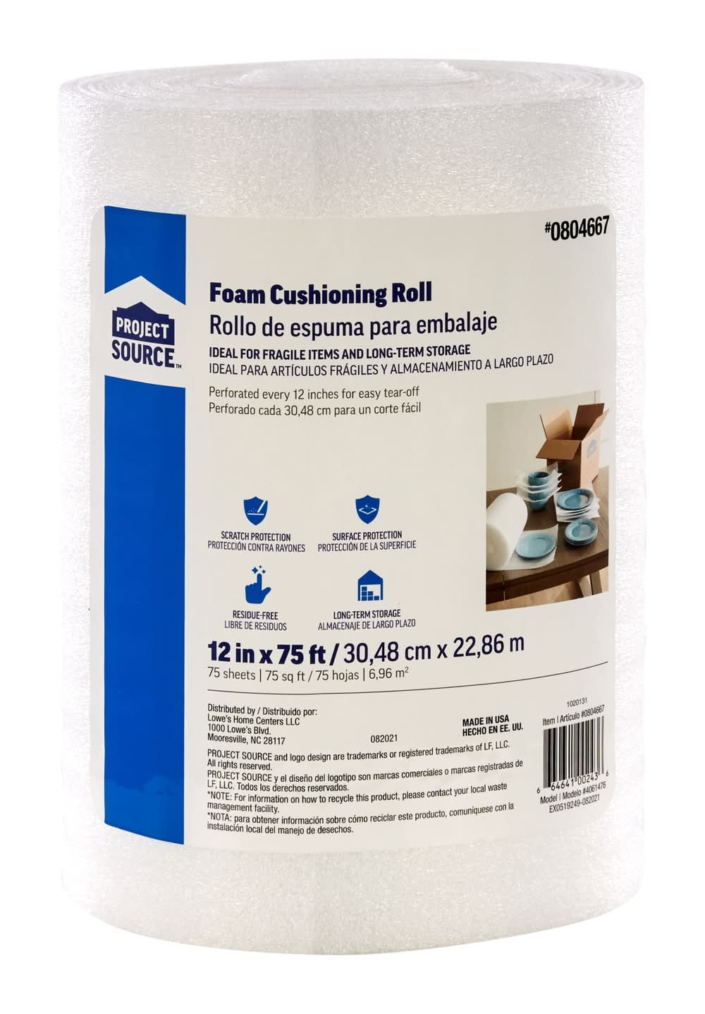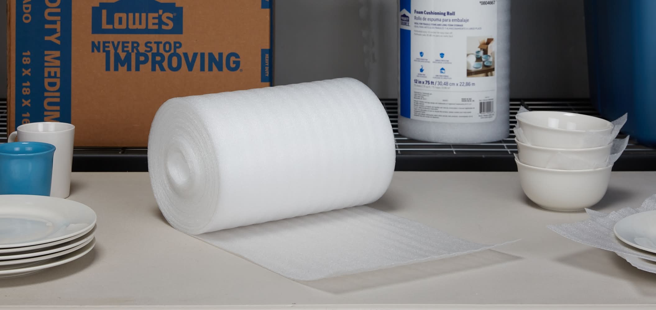 Packing foam is ideal for protecting glasses, dinnerware and other fragile items during moving or long term storage. Its premium protection is non abrasive and ideal for preventing breaks and scratches. At, 1/16 in thick this foam offers premium protection protects glasses, vases, plates, candles and other fragile items. Made in the USA. Perforated every 12 inches for easy tear. Color: White