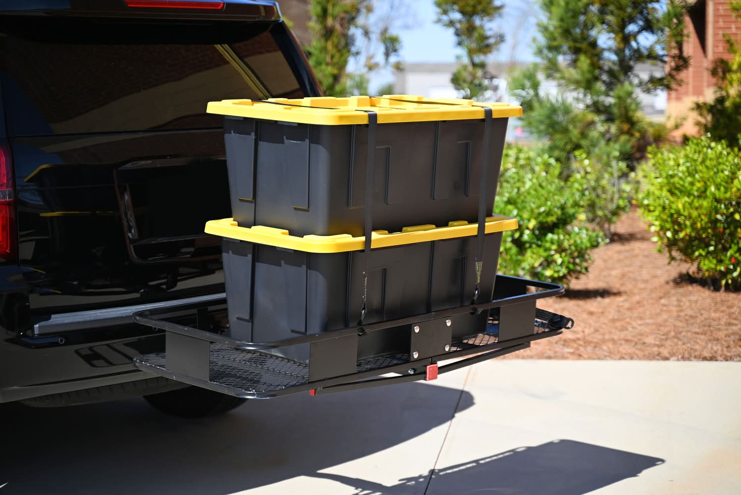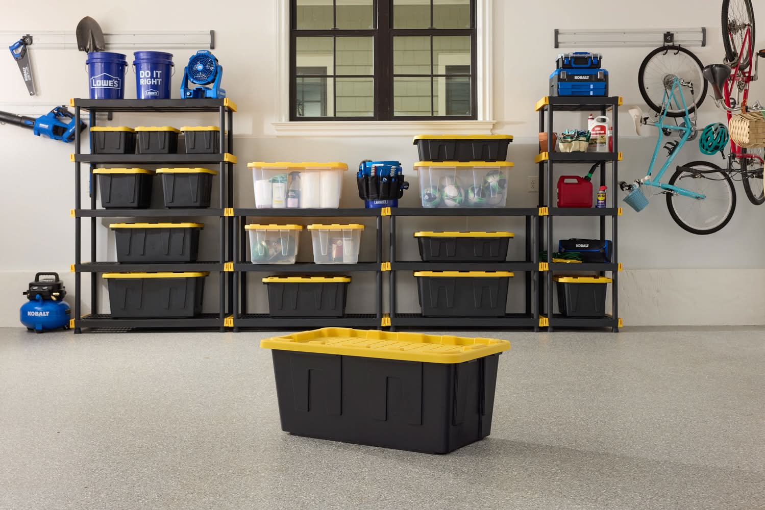 Project Source Commander X-large 40 -Gallons ( 160 -Quarts ) Black and Yellow Heavy Duty Stackable Tote with Standard Snap Lid