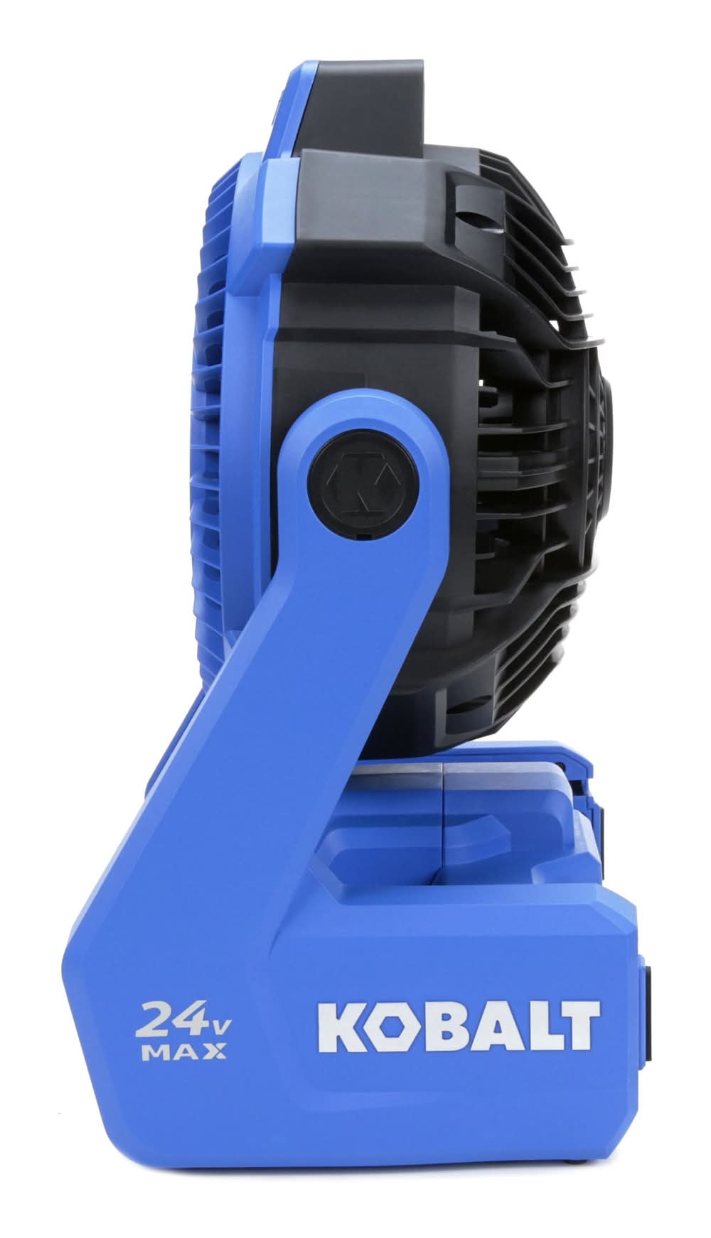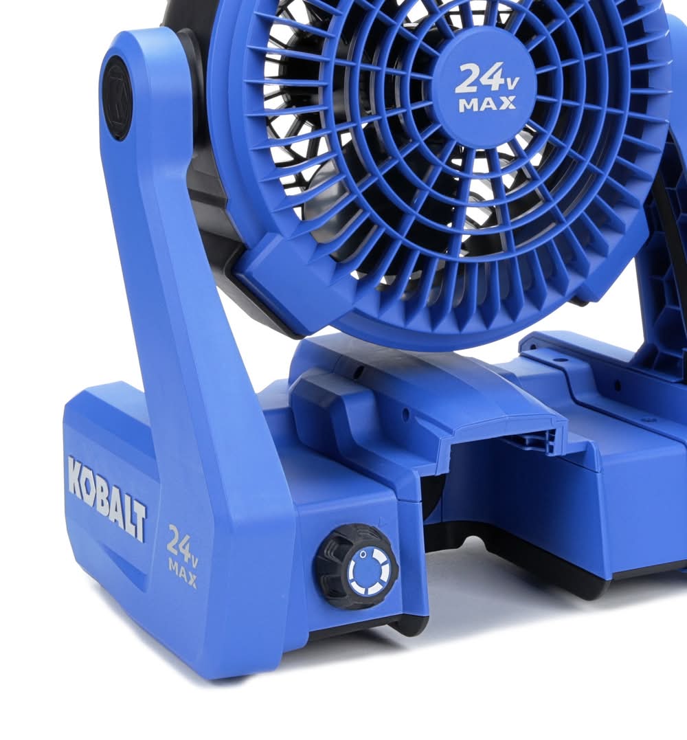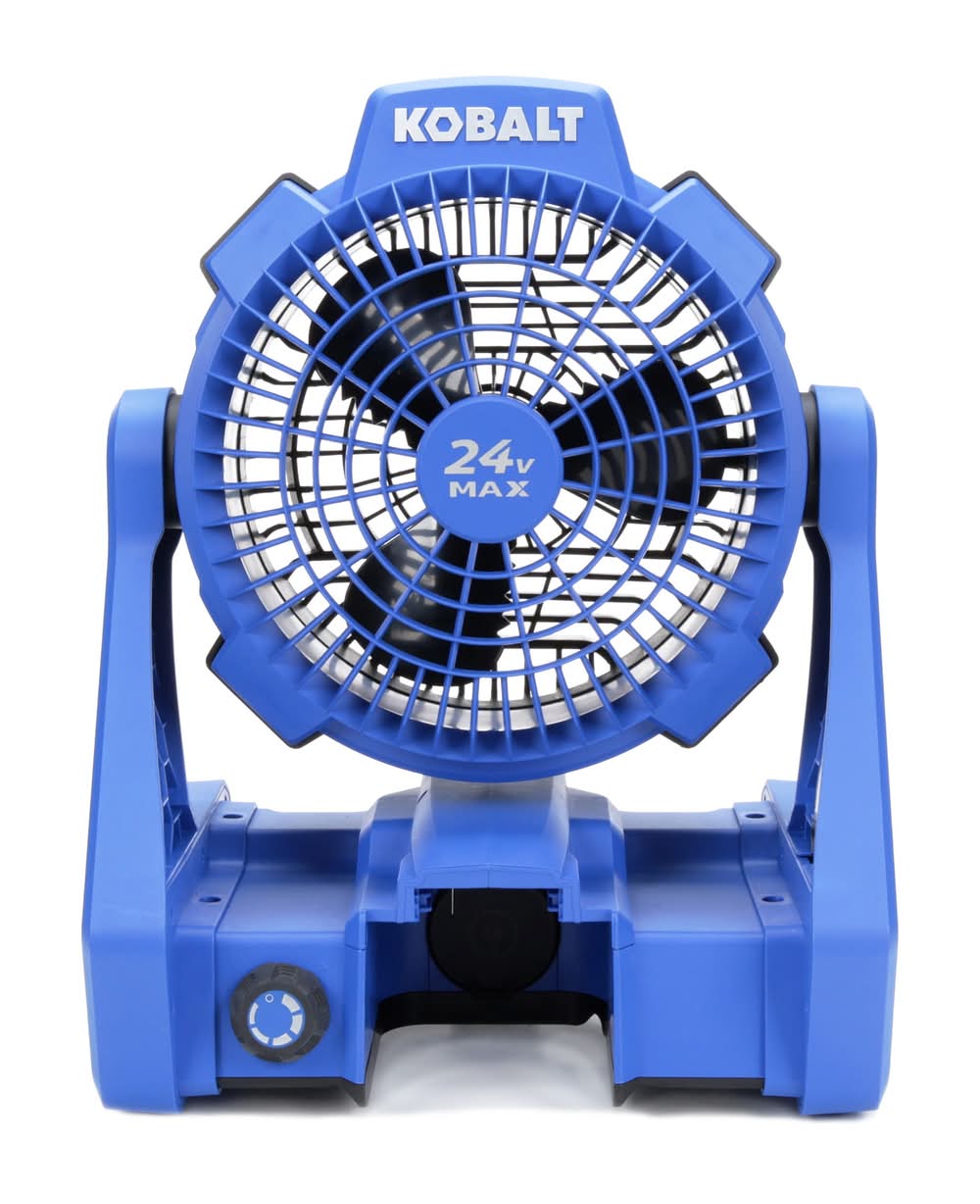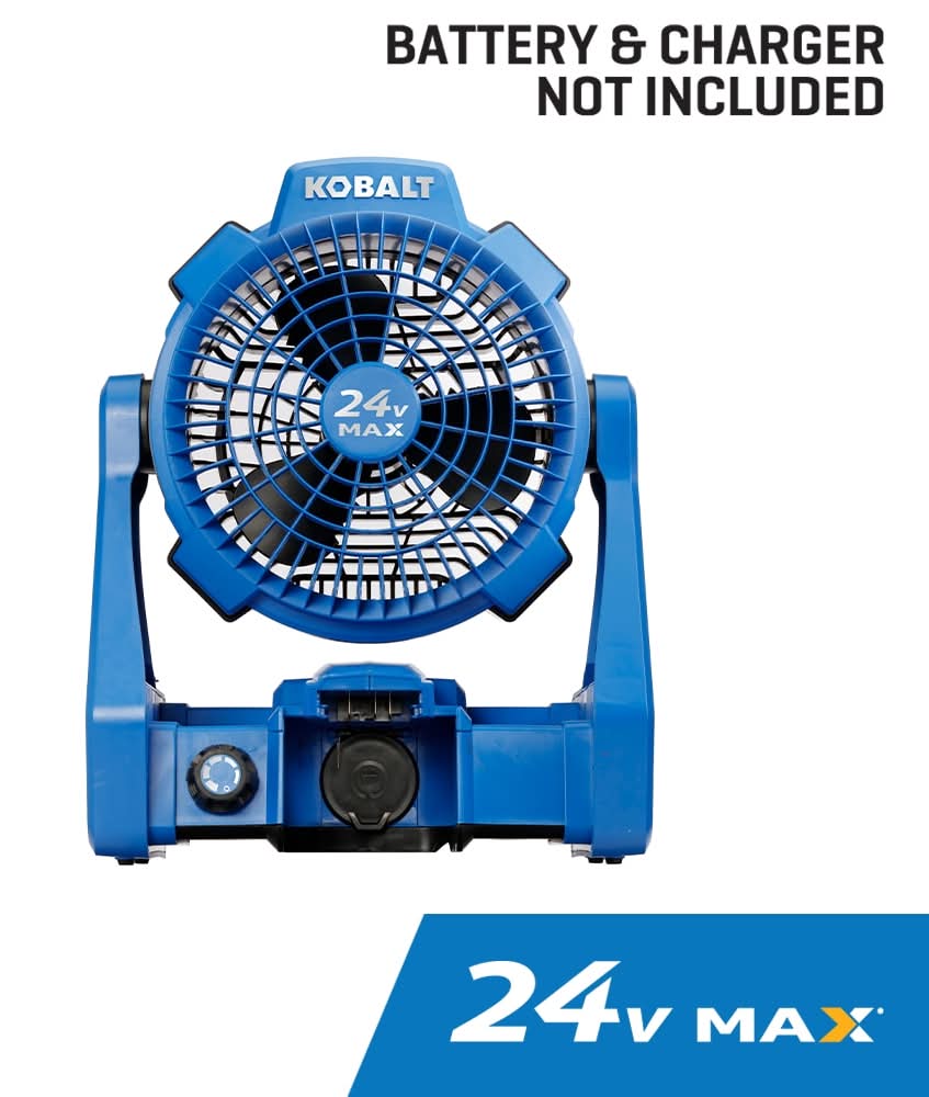 Kobalt's 24-volt motor provides more run time and longer motor life, with the power to produce air flow of up to 600-CFM. Hybrid fan that can be run using an electric power cord (extension cord) or a Kobalt 24-volt max battery (both sold separately). Fan will run for up to 60 hours on low speed when using a Kobalt 24-volt max 4.0Ah battery (sold separately). The compact, lightweight design, at only 5.5-lbs, allows you to easily transport the fan to any event. Multi-position, 240° fan head rotation - adjusts to aim air in many different directions. Adjustable fan speed to provide the amount of air needed. Compatible with all Kobalt 24-volt max batteries and chargers (sold separately). Kobalt's 5-year warranty gives you peace of mind. Use Location: Indoor/Outdoor