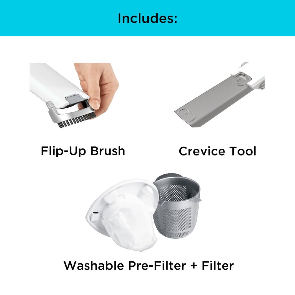 #1 brand in hand vacuums**. Optimal performance: 16V MAX*** lithium-ion battery provides high suction power and performance. Cordless convenience: Portable, rechargeable, + lightweight for use around your home and in your vehicle. Multi-surface use: Removes hair, dirt, debris, and pet hair from carpets, car interiors, furniture, and high-traffic areas. Compact design: Easy to hold when in use and easy to store until you're ready to use again. Rotating slim nozzle: Rotates to help you clean tight, hard to reach spaces. Pull-out crevice tool: Accesses hard-to-reach areas like between couch cushions and on top of shelves. Flip-up brush: Adds versatility for dusting and vacuuming upholstery. Cyclonic action: Spins dust and debris away from the filter, supplying consistently strong suction power. For CA Residents Only: WARNING: This product can expose you to chemicals including Lead which are known to the State of California to cause cancer and birth defects or other reproductive harm. For more information go to www.P65Warnings.ca.gov. Color: White