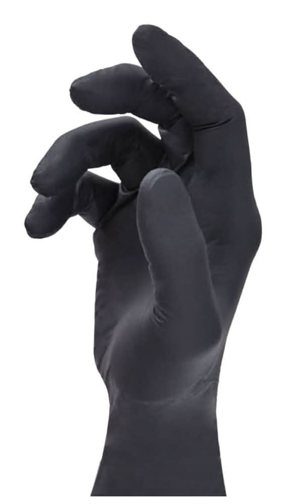 5 mil premium nitrile. 50% thicker than standard nitrile gloves. Textured for a superior grip, wet or dry. Color: Black
