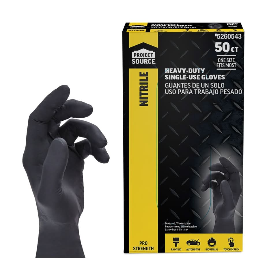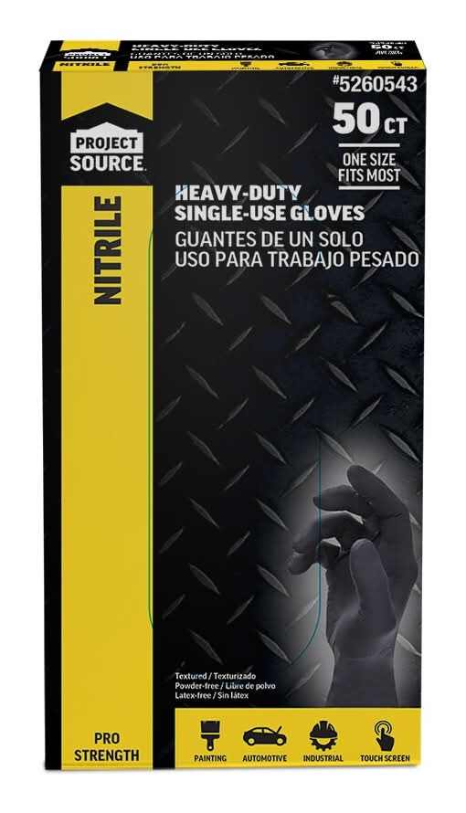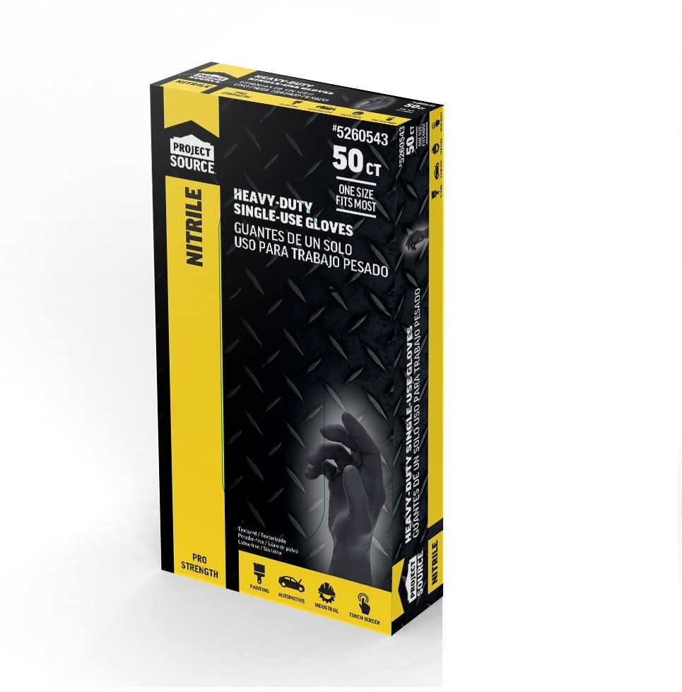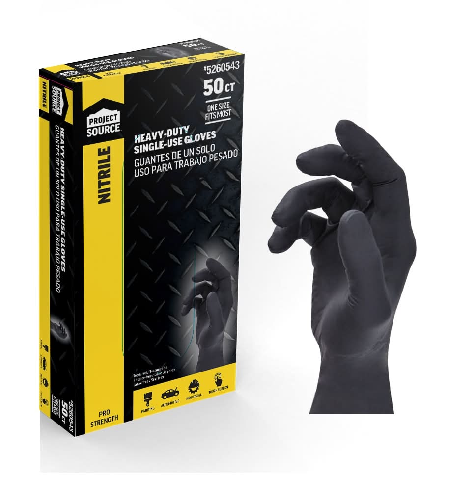 Project Source Heavy Duty One size fits all 50 -Count Textured -Grip Food Grade Nitrile Disposable cleaning gloves 25 -Pairs