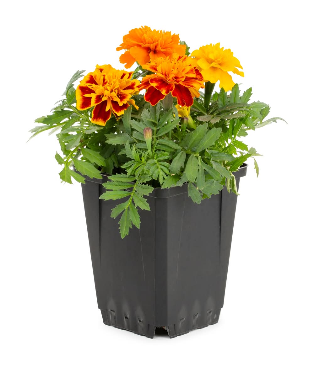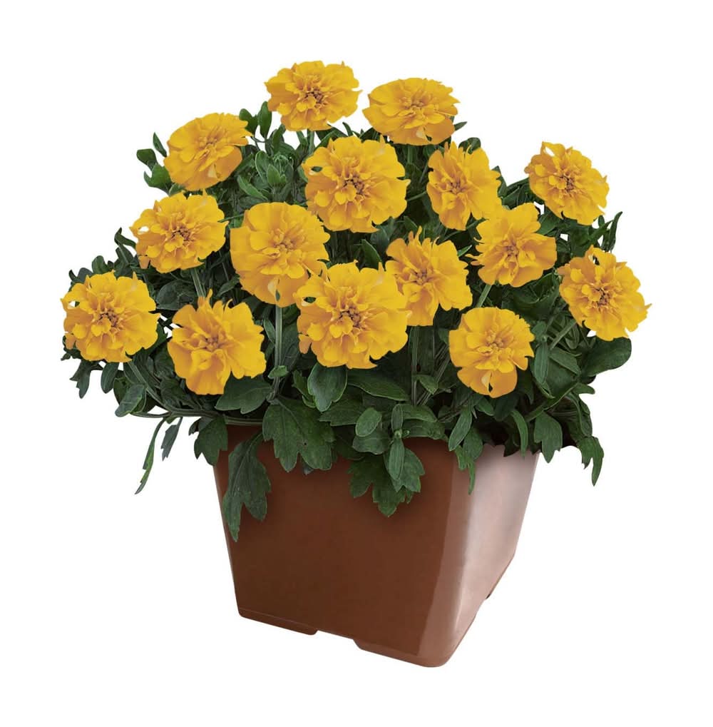 Plant a garden of sunshine with marigolds; these cheery annual flowers are a snap to grow, offering nonstop blooms all summer long. Add color and texture to any flower bed by using 1.00 PT items to compliment the perennials and shrubs in your landscape. Annuals make the biggest show when planted in groups of odd numbers, 9 being a favorite. Marigold's are a favorite of butterflies who feast on the nectar-rich blooms; tolerant of drought and high temperatures, marigolds prefer a hot, sunny garden location that receives at least 6 to 8 hours of direct sun a day. Deadhead to encourage continuous blooms. Fragrant: No Use Location: Indoor/Outdoor Light Requirements: Full sun Blooming Season: Spring to Fall Deer-Resistant: Yes Safer for Pets: Yes Spreading Plant: Yes Insect Resistance: Yes Drought Tolerance: Yes