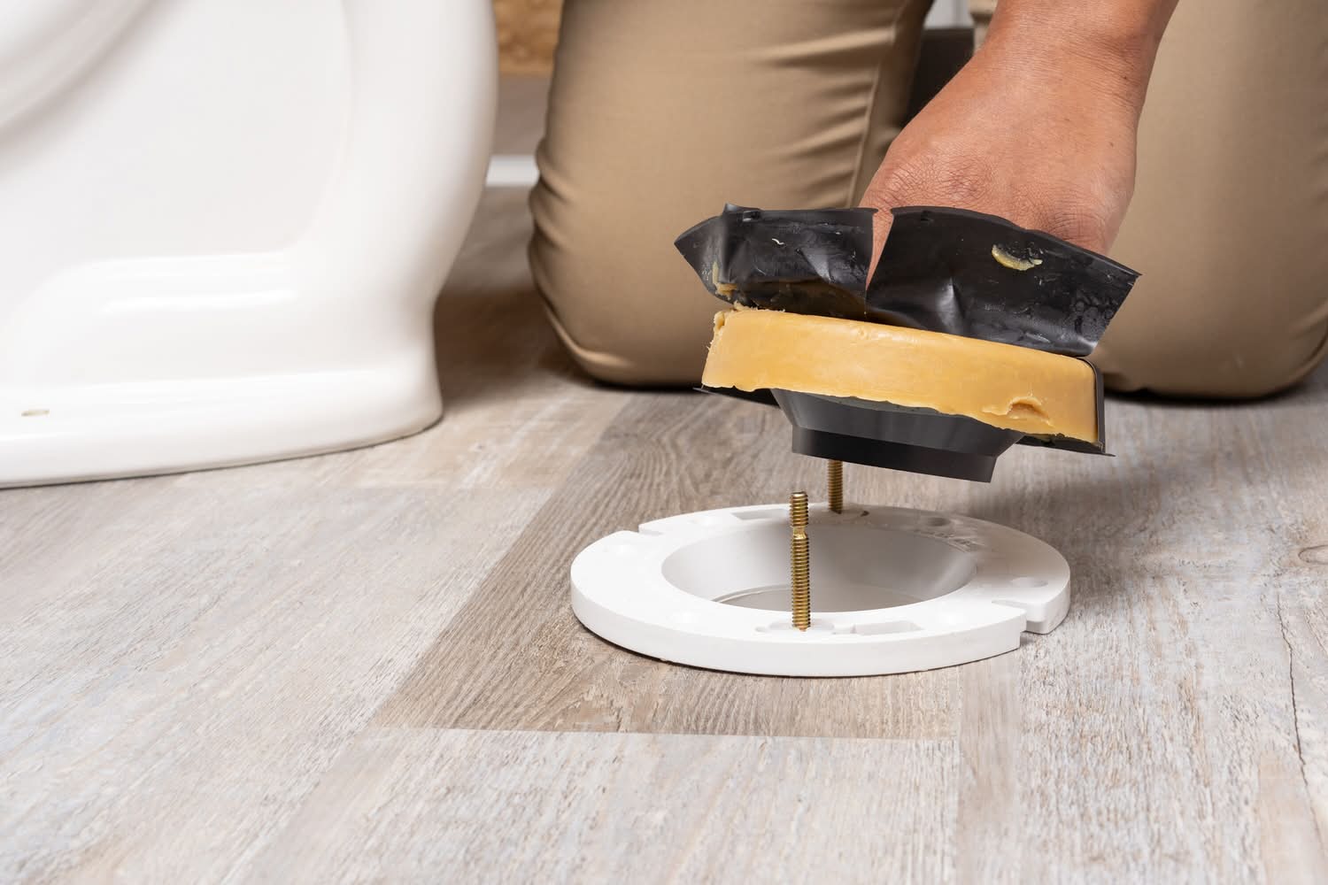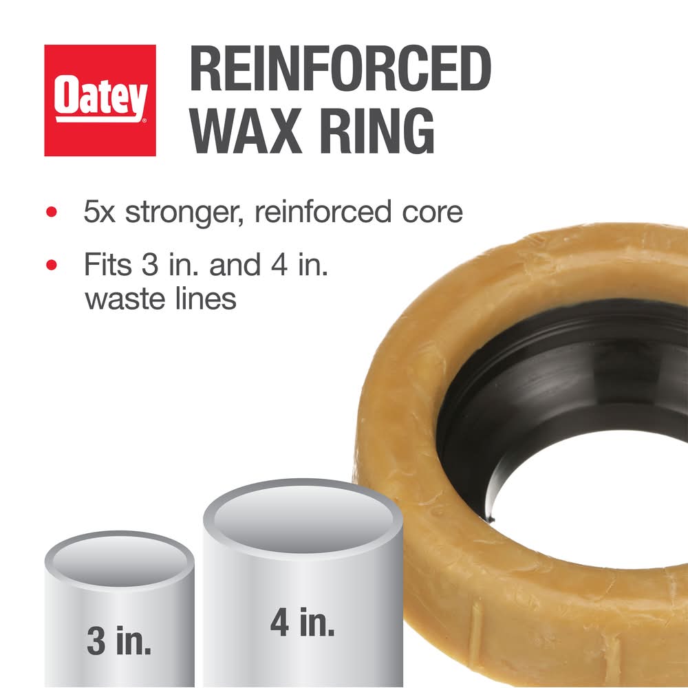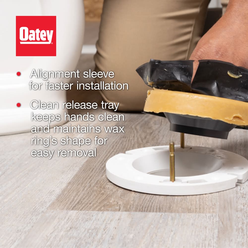 5x stronger wax ring with reinforced core. For setting floor mount toilet bowls with any floor type. Fits 3-in and 4-in waste lines. Constructed of soft, flexible high-quality golden wax that will not dry out, harden or deteriorate. Stainless, waterproof and impervious to odors and gases. Reinforced core adds strength. Polyethylene sleeve extends discharge opening for a more positive seal. Exclusive all-weather, non-stick clean release tray keeps hands clean while maintaining the shape of the wax ring for easy removal and installation. Kit comes with nuts and 1/4-in x 2-1/4-in steel E-Z Snap bolts for seamless, convenient installation. Color: Brown