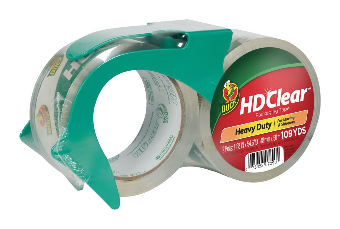 Duck 2 -Pack 1.88-in x 54.6-yd HD Clear Moving tape Dispenser Included