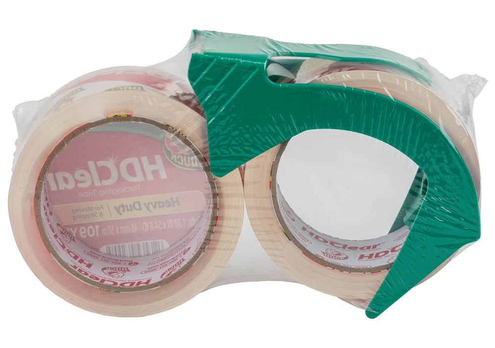 Heavy-duty packing tape for medium weight boxes. Ideal for use on moving boxes or shipping boxes to keep packages secure. Wide temperature range performance allows this tape to stick well in hot or cold temperatures. Adhesive bond strengthens over time for long-lasting hold on boxes while moving even across long-distances. Crystal clear to the core for a professional look in any application. Includes: 1 dispenser and 2 rolls of tape. Meets postal regulations for shipping tape. Color: Clear