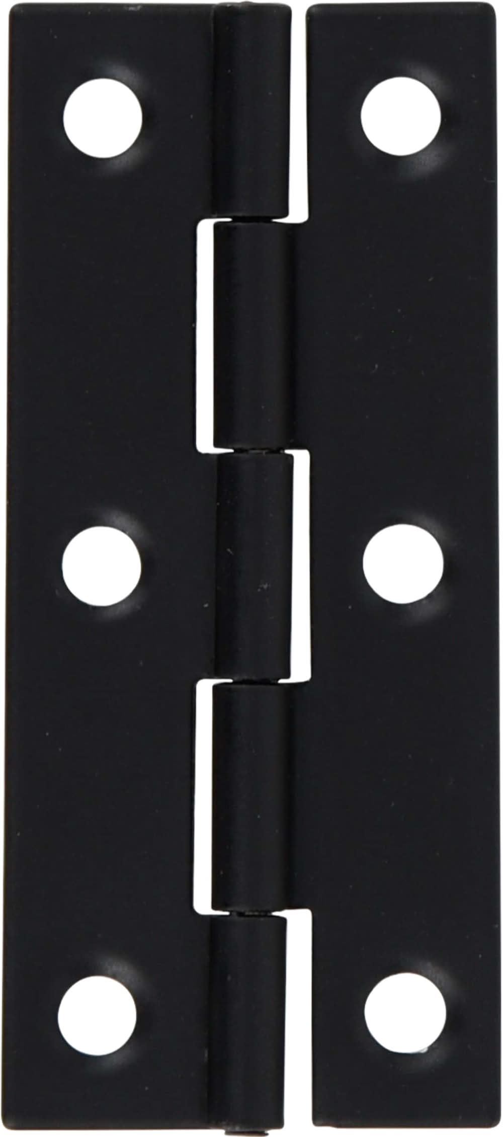 2-1/2-in length x 1-1/16-in width. Great for small chests, crafts, and light cabinet doors. Black finish adds a modern touch to any decor. Surface mount installs flush with no mortising required. Package comes with all necessary mounting hardware. Beveled holes allow a flush fit and clean appearance. Best for lightweight doors - not for heavy-duty use. Installs with basic tools, including a power drill, 3/32-in bit, and Phillips screwdriver. Durable steel build for light-duty home applications. Color: Black