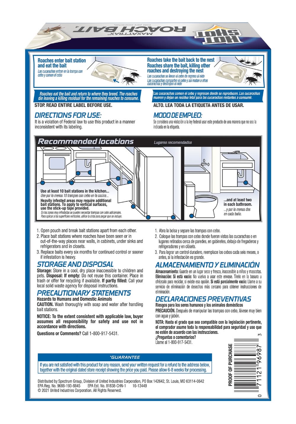 Lasts up to 6 months. Kills both large and small roaches. Attractant draws roaches to bait station. Contains 12 child-resistant bait stations. Starts killing in hours.
