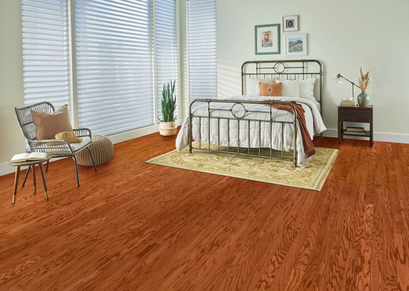 Add value to your home with the beauty and authentic character of engineered oak flooring. Lock and Fold™ technology allows for simple and fast click-lock installation on, above, or below grade. Gunstock Oak lets the true beauty of the wood grain shine; topped with a low gloss finish on the traditional smooth texture. Janka hardness rating of 1290 withstands everyday traffic and provides dimensional stability, but is also easy to cut, nail, and sand. Suitable for install over both plywood and concrete subfloors; underlayment required if installed by floating method. Easy to clean and maintain with Bruce® Hardwood and Laminate Floor Care Products. 3-In width x random length of up to 48-in x 3/8-in thick; one carton covers 22-sq ft. Wide engineered hardwood plank with rotary face 1.4-mm veneer, 3-layer plywood core, and Lock and Fold™ fitting for float/glue/staple installation. Color: Brown