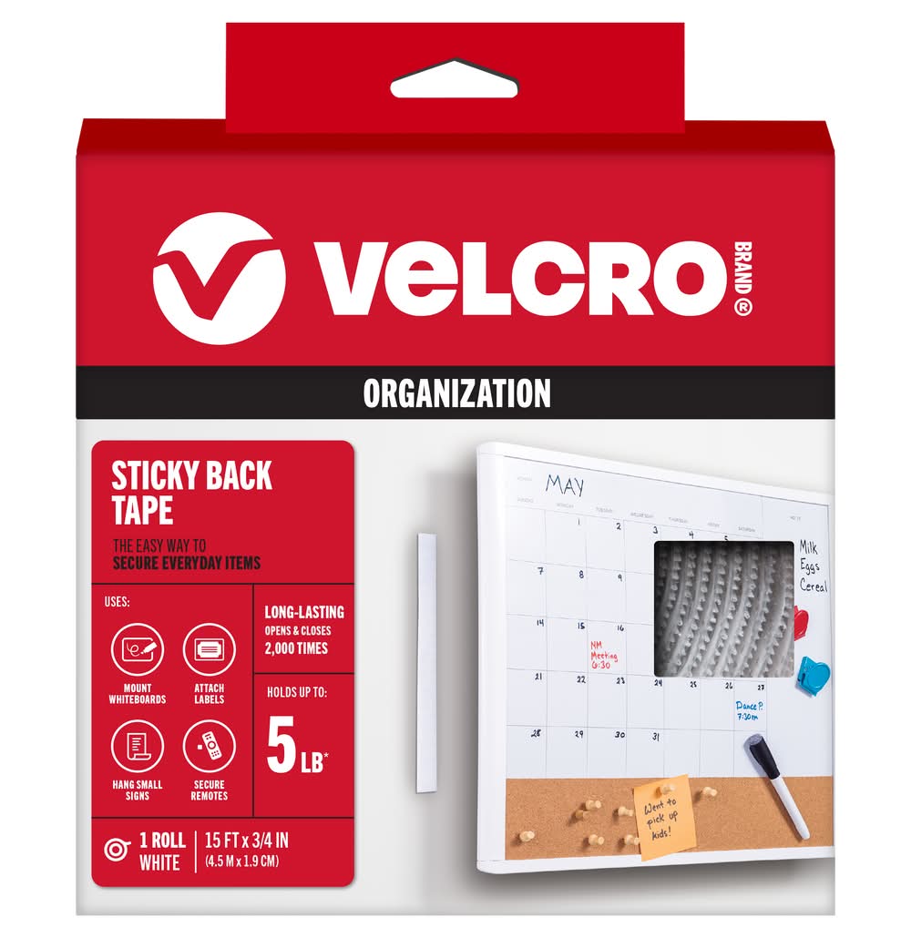 VELCRO Brand 15 Feet White Hooks Sticky Back 15ft x 3/4in Roll White Hook loop fastener 100-lin ft 5-lb Weight Capacity