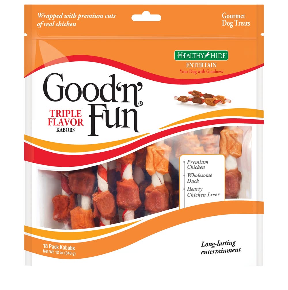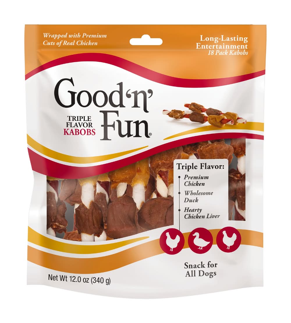 Good 'n' Fun Triple Flavor Kabobs, 18 count Rawhide chews for Dog Chicken Flavor 18 Count