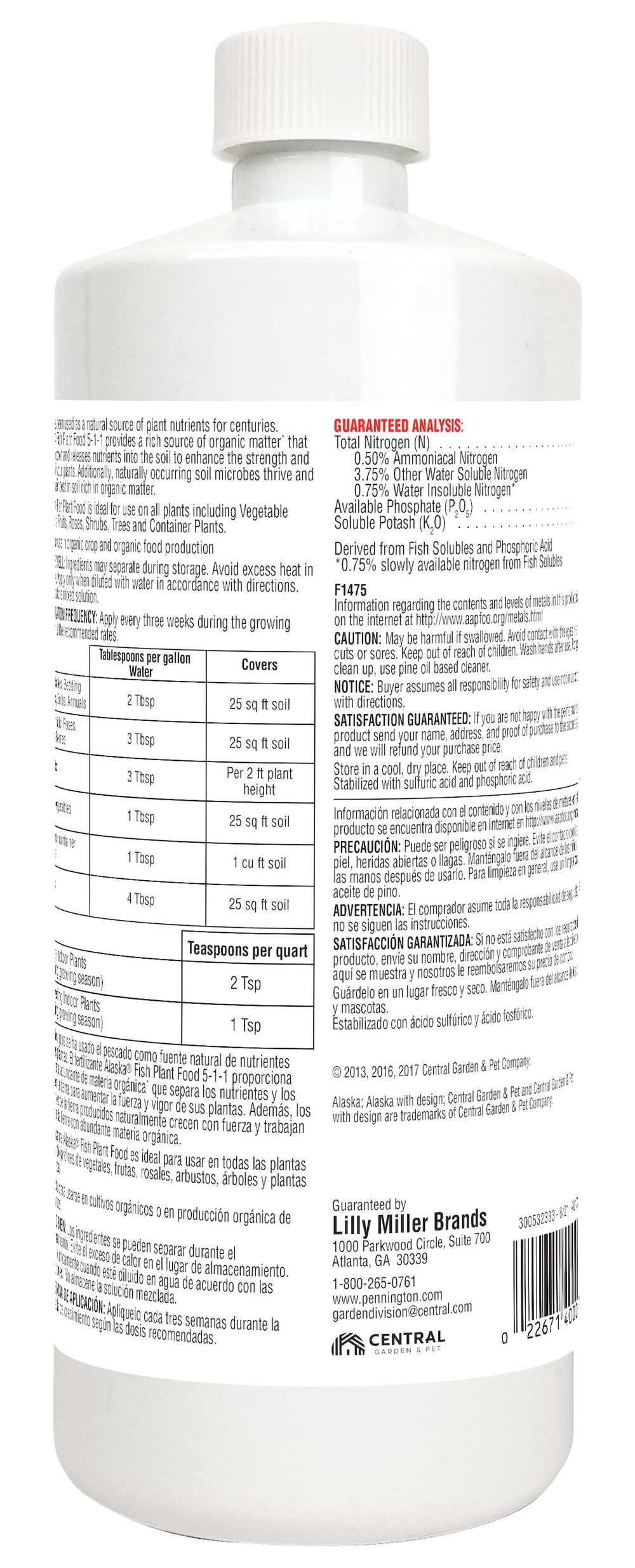 Fish fertilizer for gardening. Use on vegetables, fruits, flowers, trees and other plants. Great for all indoor and outdoor plants. Fish emulsion for gardening. Easy to use, just mix with water. 5-1-1 Fertilizer is an excellent source of plant nutrients. Our new facility is in the process of certification which requires the OMRI listing and for organic gardening claim from this product be removed until the process is complete. Rest assured this is the same product gardeners have trusted for generations, and no changes have been made to the product itself.