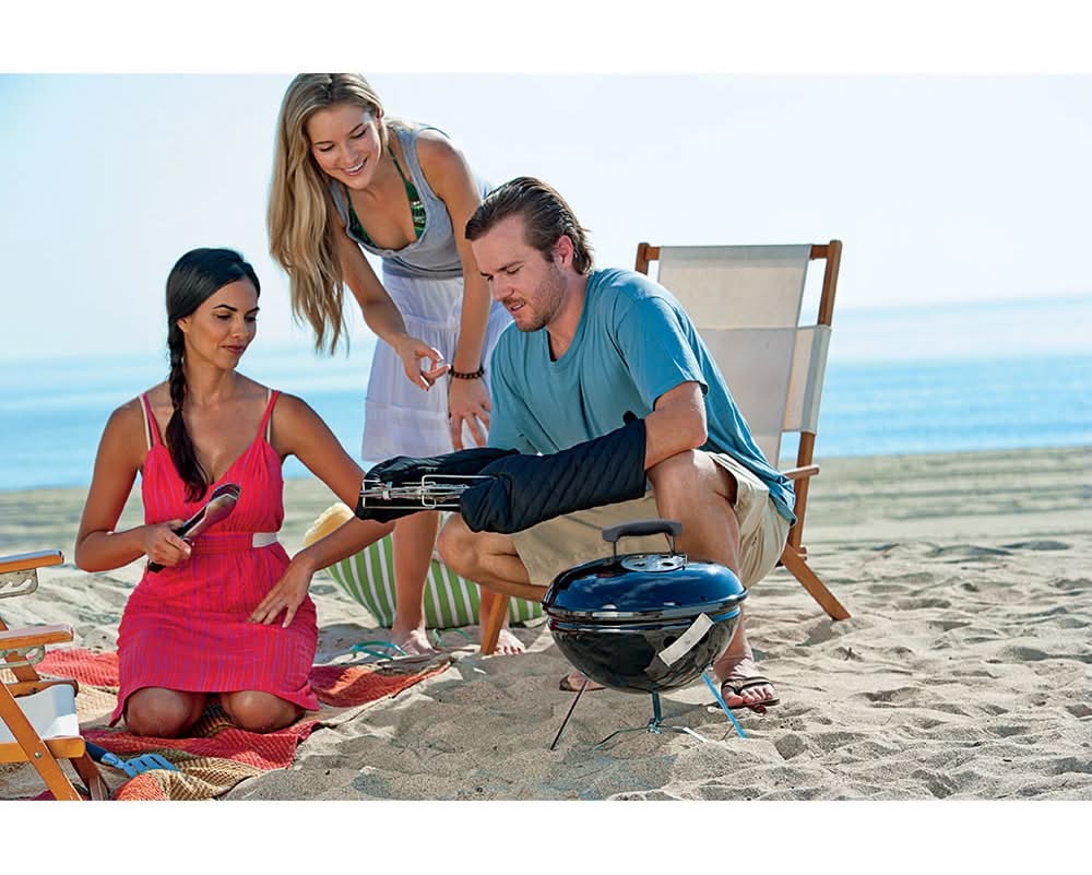 The Weber Smokey Joe Portable Charcoal Grill has a durable-plated, steel cooking grate, crafted from premium steel for enhanced durability; Cooking grate offers a resilient surface. Porcelain-enameled lid and bowl are engineered to withstand high temperatures and retain heat; Bowl and lid combination on outdoor grill and BBQ resist rust and won't peel. Experience grilling precision with charcoal grill's rust-resistant aluminum damper, engineered for longevity and control; This damper allows you to effortlessly regulate airflow. Kettle grill's handles were crafted with precision and durability in mind; Reinforced with high-quality, glass-infused nylon, ensuring they withstand the demands of frequent use and exposure to heat. Designed for quick and convenient ash disposal, the grill's catcher is crafted from durable aluminum, ensuring longevity and resistance to corrosion. This outdoor grill was designed to be compact and lightweight for easy grilling on the go, whether you're at the bea For CA Residents Only: WARNING: This product can expose you to chemicals including Lead which are known to the State of California to cause cancer and birth defects or other reproductive harm. For more information go to www.P65Warnings.ca.gov. Color: Black